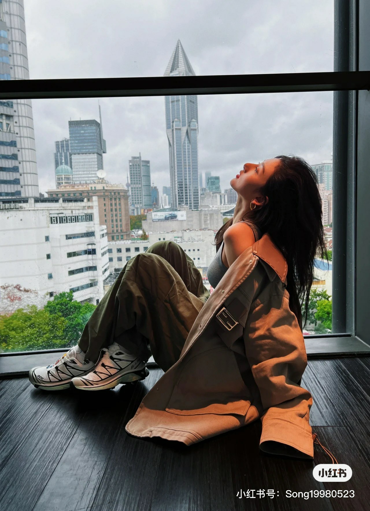 宋祖儿还穿了一双「哈士奇」配色 Salomon XT-6。