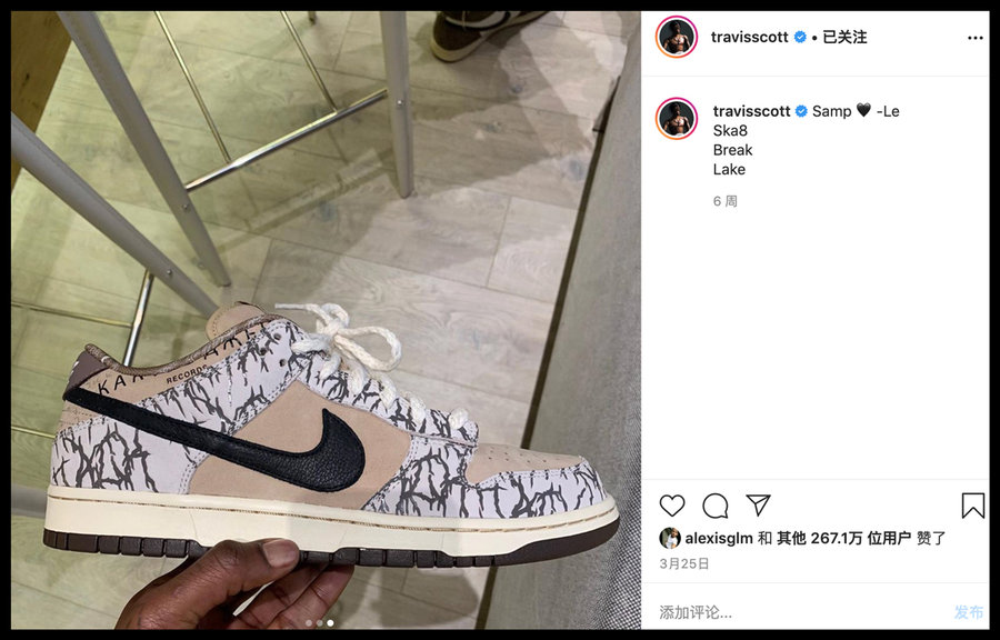 近期海外有消息称,两年前 Travis Scott 亲自曝光的一双未市售版本的联名 Dunk SB 即将正式登场,虽然没有具体的实物泄露,但相信各位小伙伴听到这一消息一定非常激动。