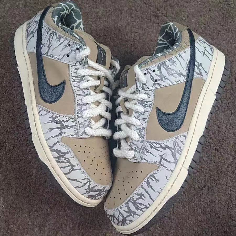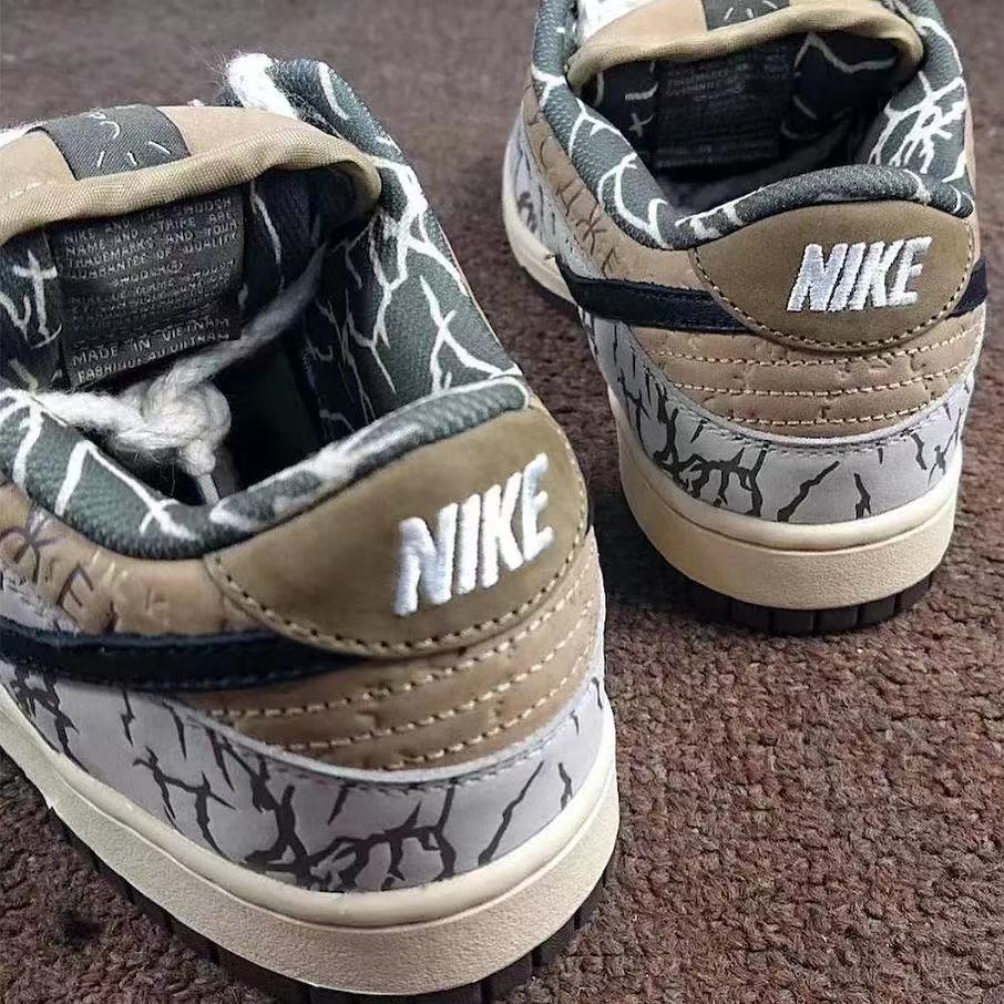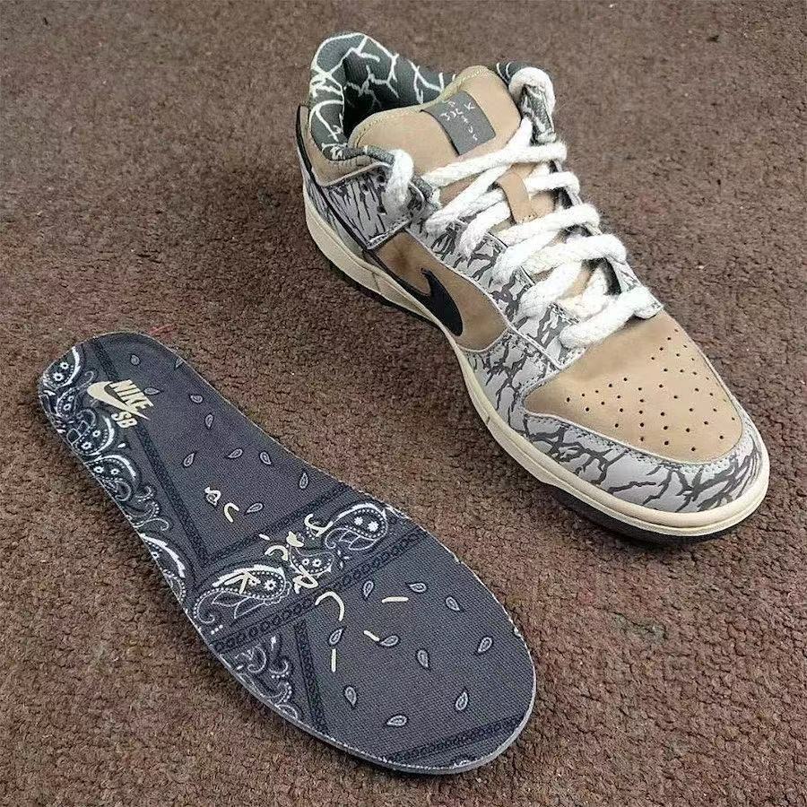 接下来我们先回顾一下,此前曝光过的 Sample 版本 Travis Scott x Nike Dunk SB 的颜值外貌。