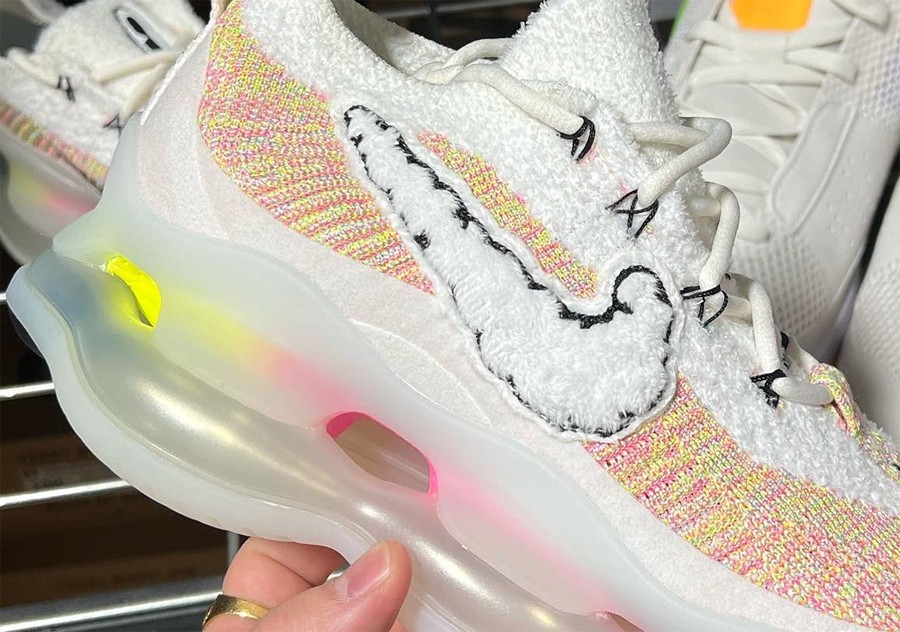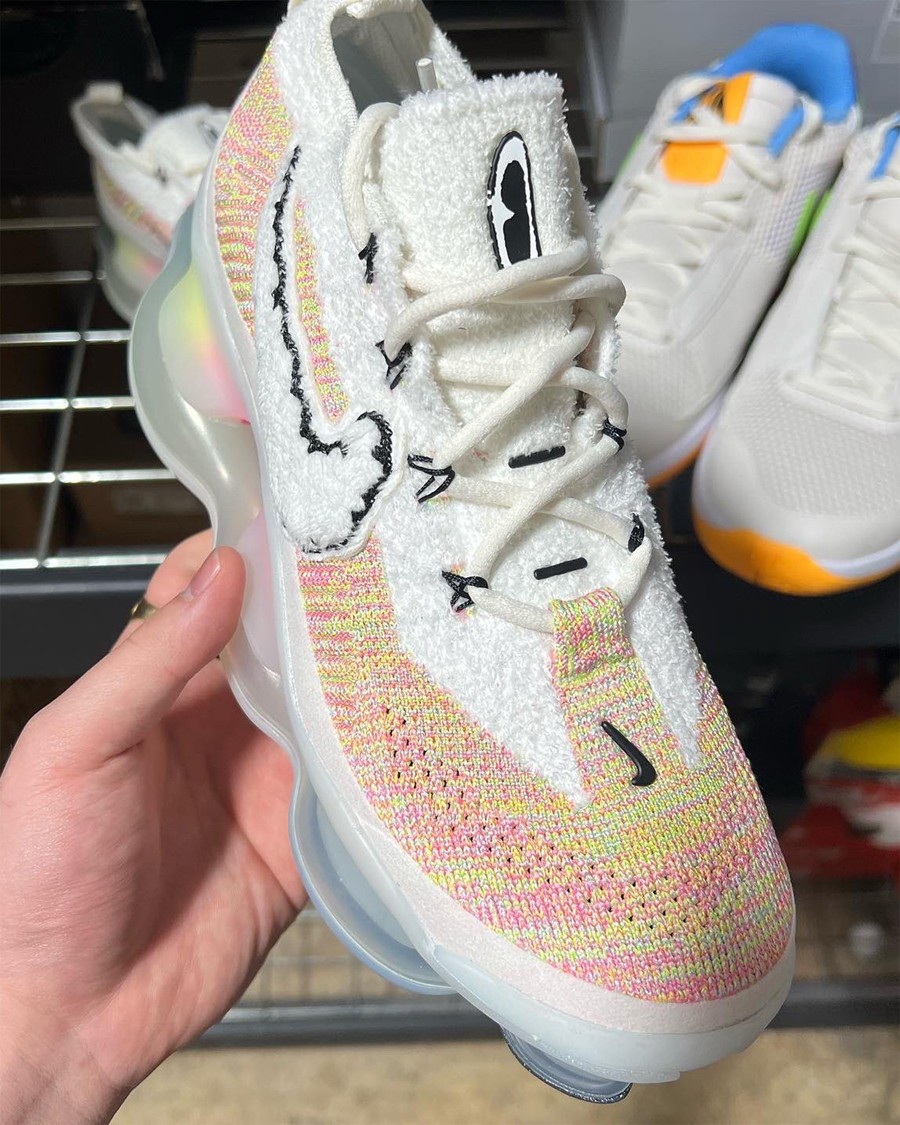 鞋身依旧采用 Chenille Flyknit 科技进行包裹,呈现先出毛茸茸的特殊质感,再搭配上配色的甜美让整体造型十分可爱。