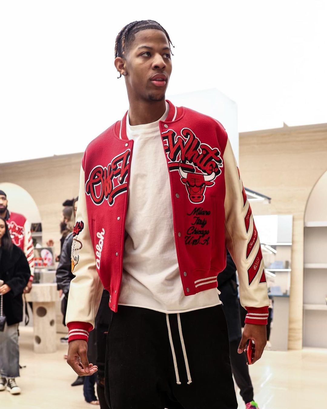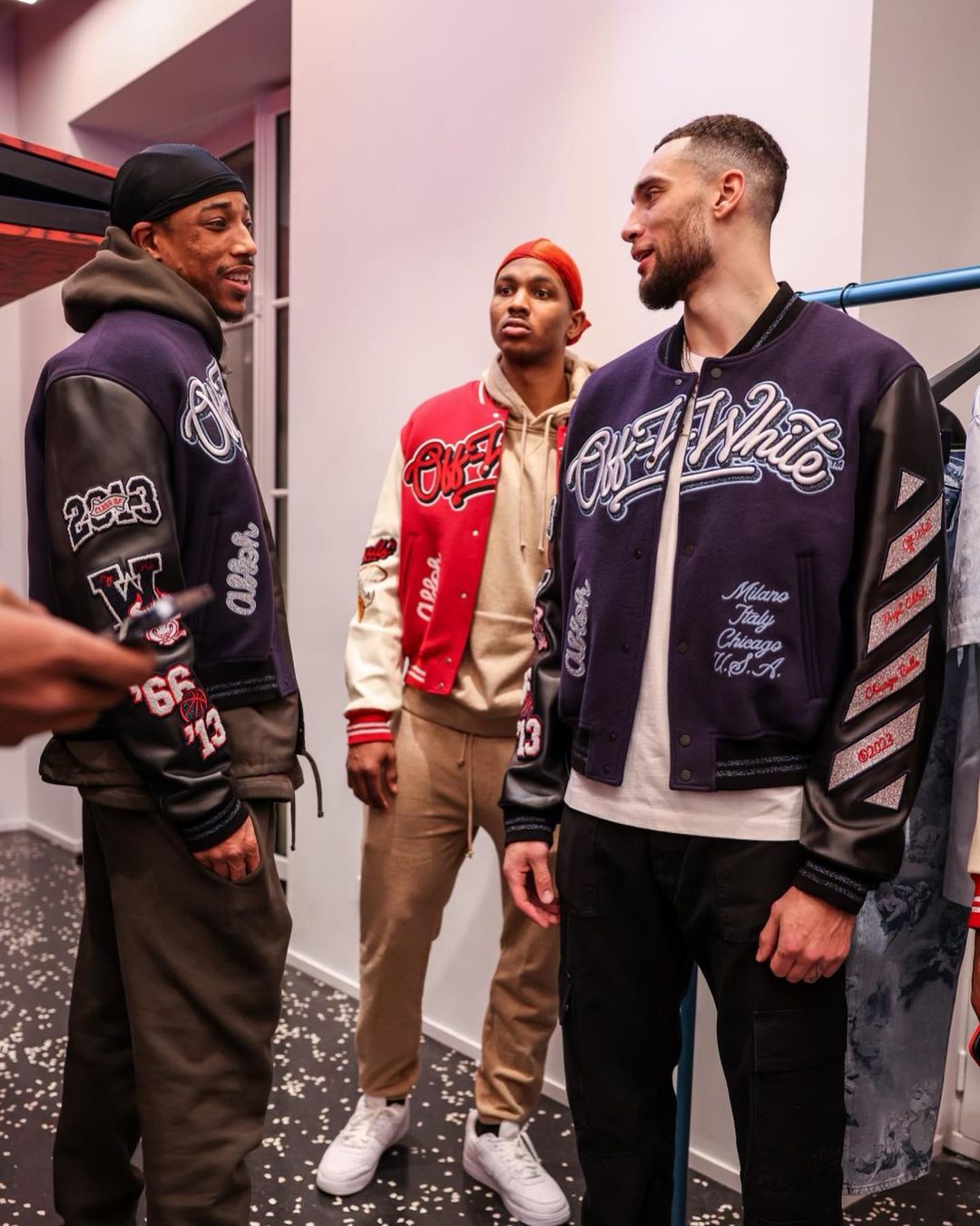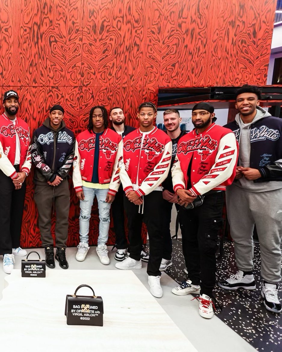 近期,OFF-WHITE 携手 Virgil 老友 Don C 的街头品牌 Just Don 和家乡球队 Chicago Bulls(芝加哥公牛队),推出了全新联名系列,并且请来了公牛队全体球员作为模特进行上身展示。