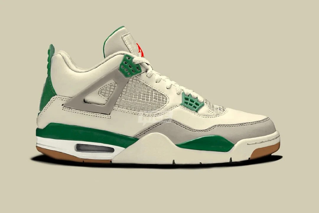 此前有一双黑色款曝光,近日全新 Nike SB x Air Jordan 4 “Pine Green”释出效果图。