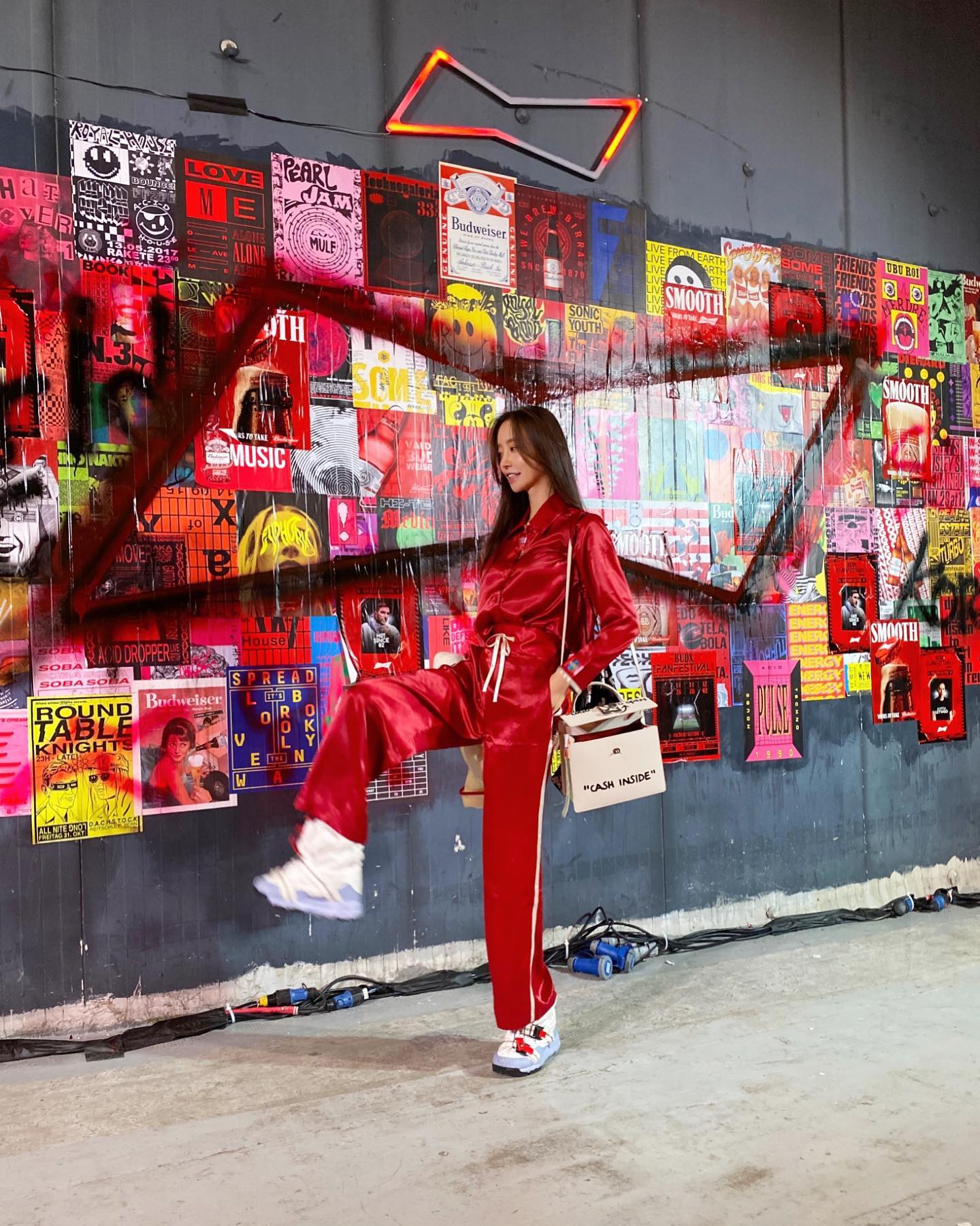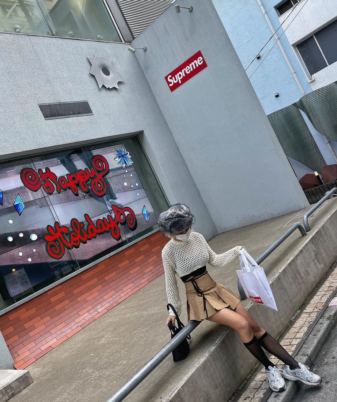 私下经常出没潮流店铺,黑丝配球鞋这种混搭风也是信手拈来。