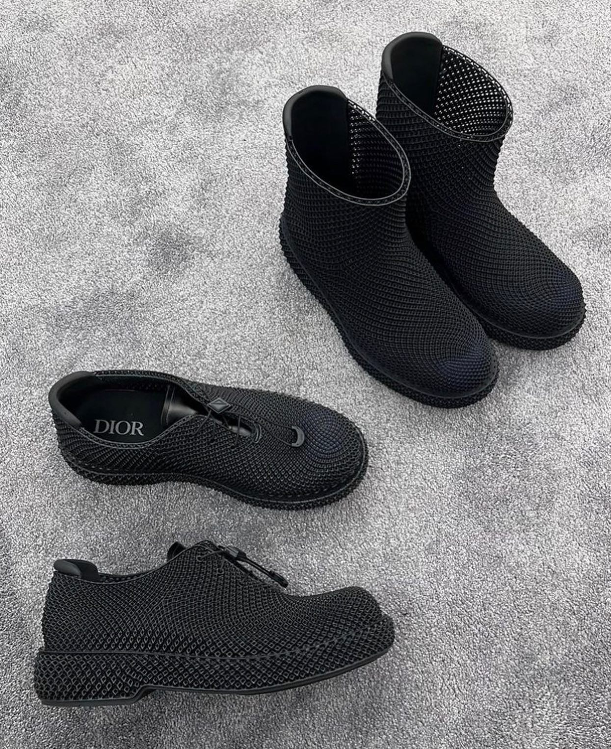 Dior 则曝光了一个全新的鞋款系列,采用了 3D 打印技术制造,再现了品牌的经典鞋型轮廓。