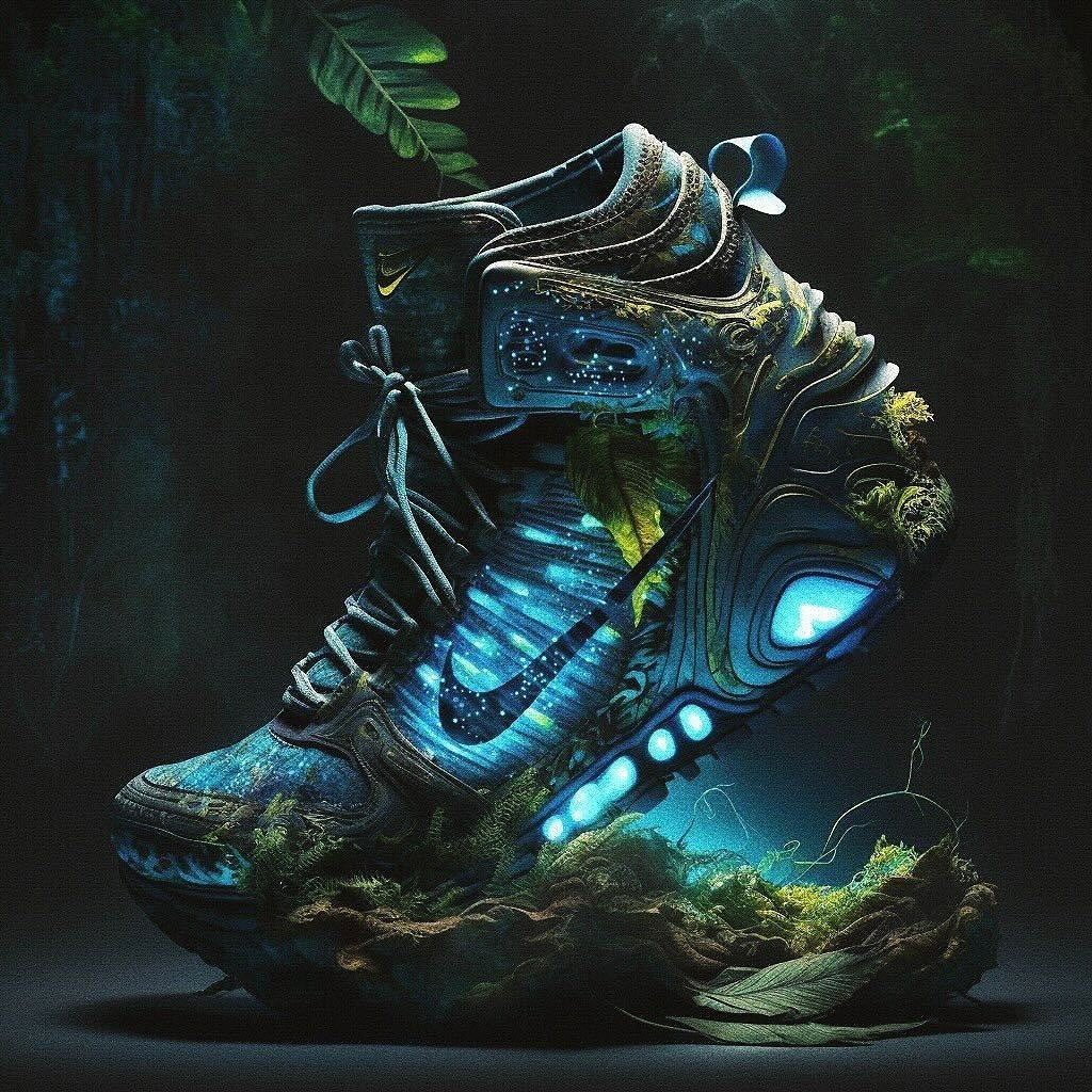 更有意思的是,最近一位海外的艺术家大开脑洞,开始自己想象 “阿凡达的 Nike 球鞋会长什么样?”