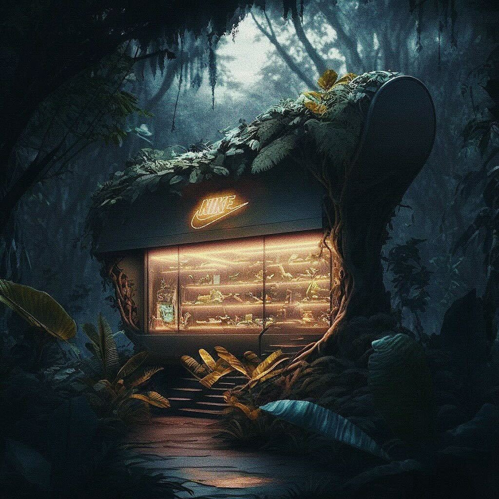 不光鞋子,这位艺术家甚至设计出了专属于阿凡达们的 “Nike 鞋店”!