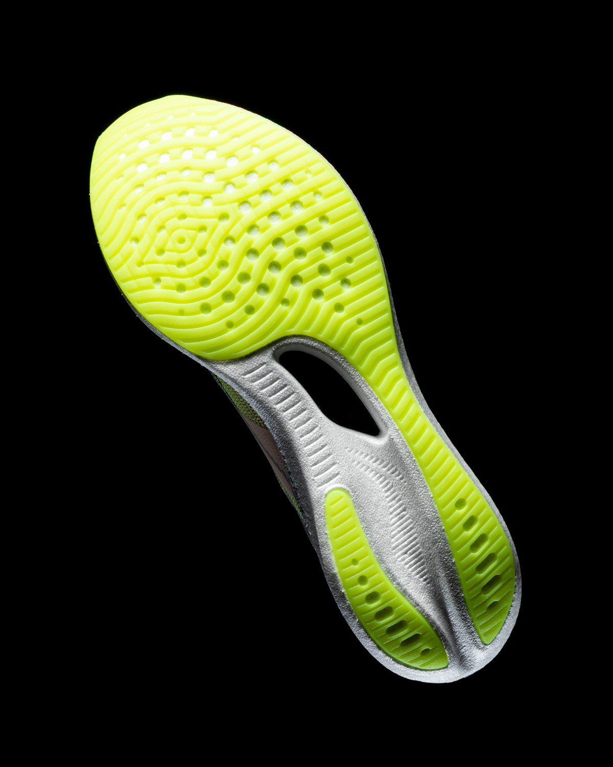 外底同样配备大面积 GCR 轻质止滑橡胶,轻松应对各种跑步训练路况。