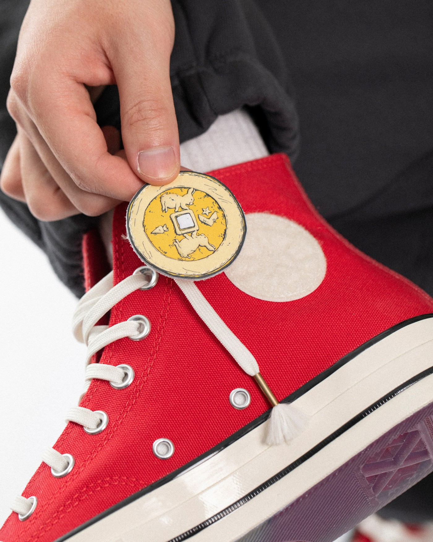 经典 Converse 圆标经过特殊切割,带来极强的视觉冲击,辨识度拉满。