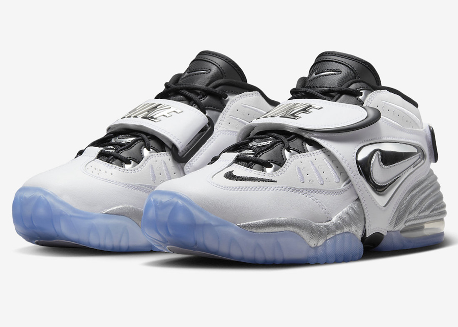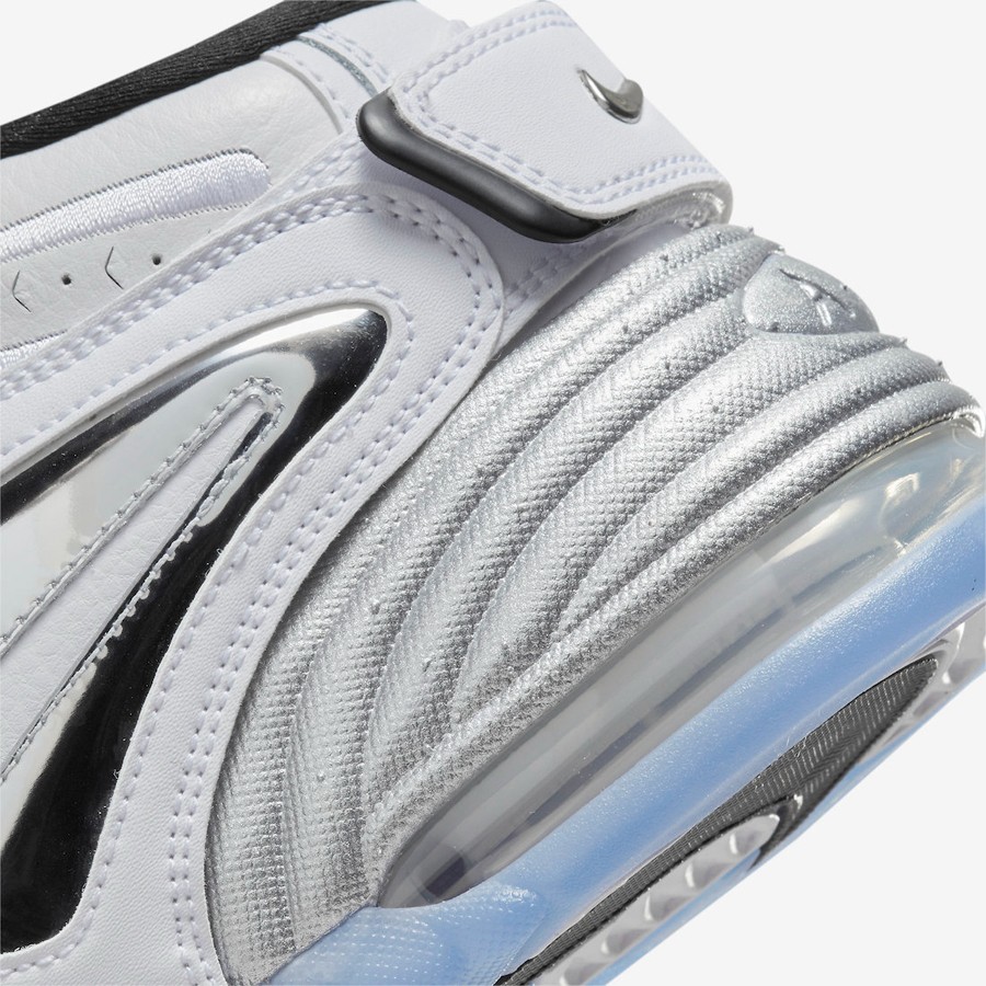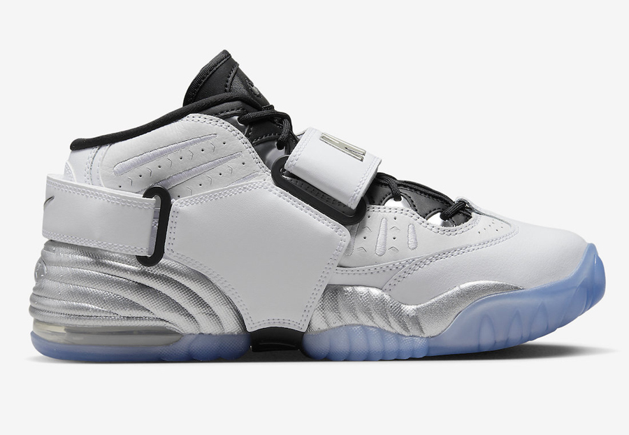另一双则采用通体白色呈现,细节处辅以电镀银色点缀,造型相比上一双会更具科技感。