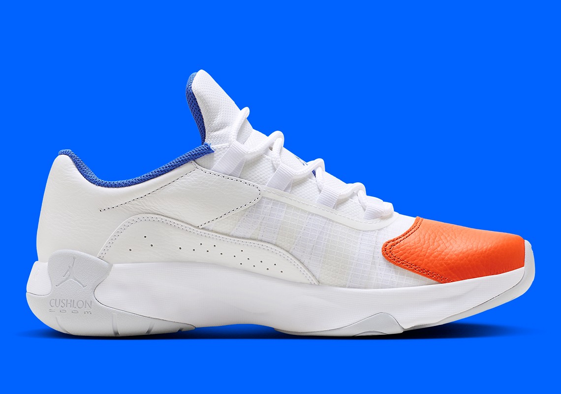整双鞋采用白色妆点,橙色、蓝色点缀,整体造型十分讨喜,还原尼克斯球衣配色方案。