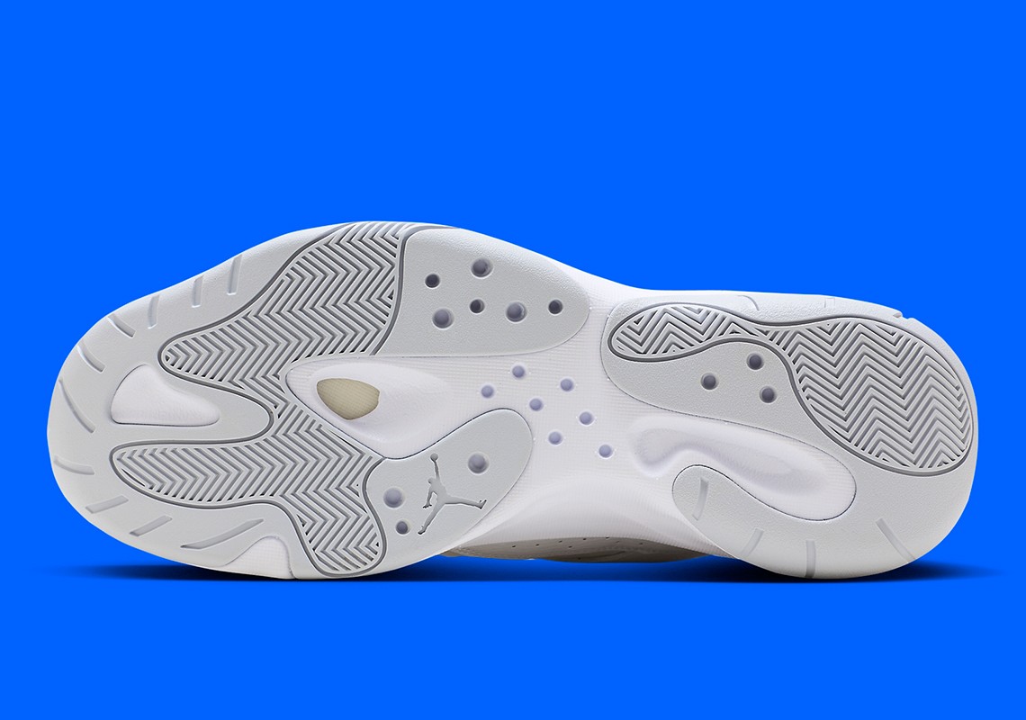 白色中底搭配灰色外底收尾,完善整双鞋设计。