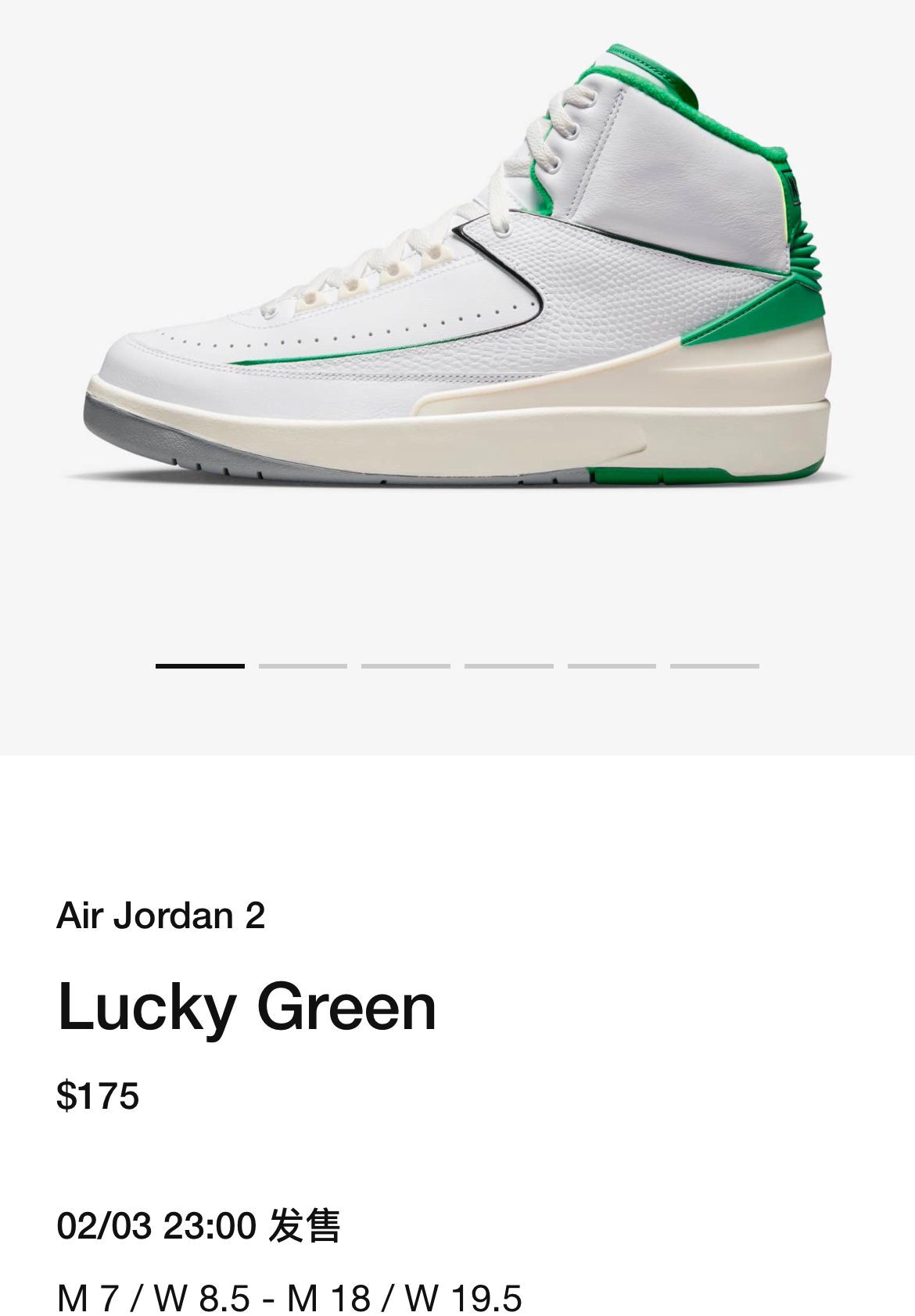 目前,Air Jordan 2 “Lucky Green” 现已上架美区 SNKRS APP,将于 2 月 3 日正式登场。