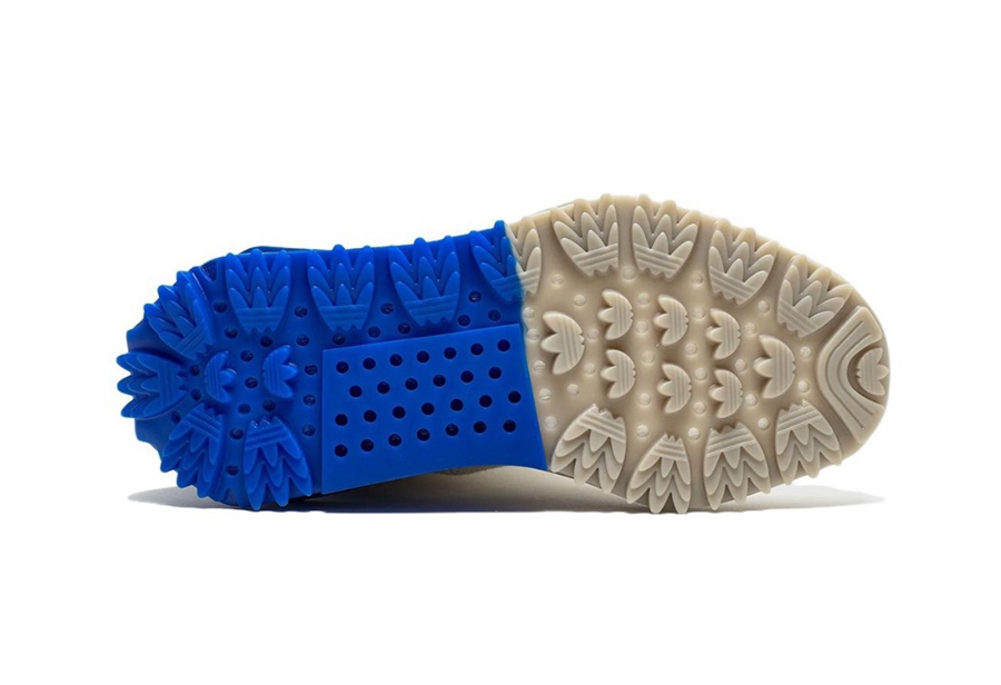 鞋款方面保留了 NMD 系列一贯的设计语言,醒目的菱形凸起,致敬了初代中底嵌入的橡胶构件。