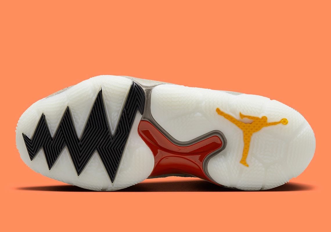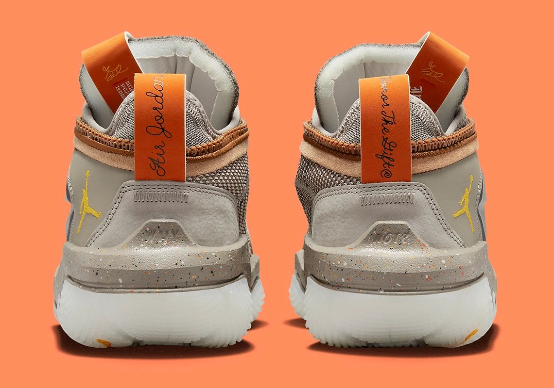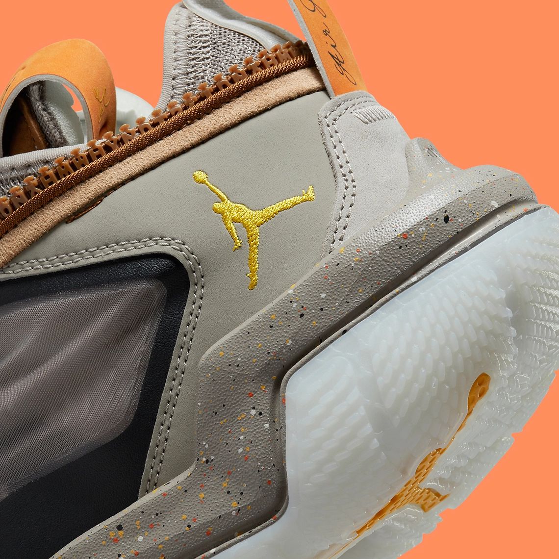 鞋跟的 Jumpman 刺绣被鲜艳的黄色照亮。