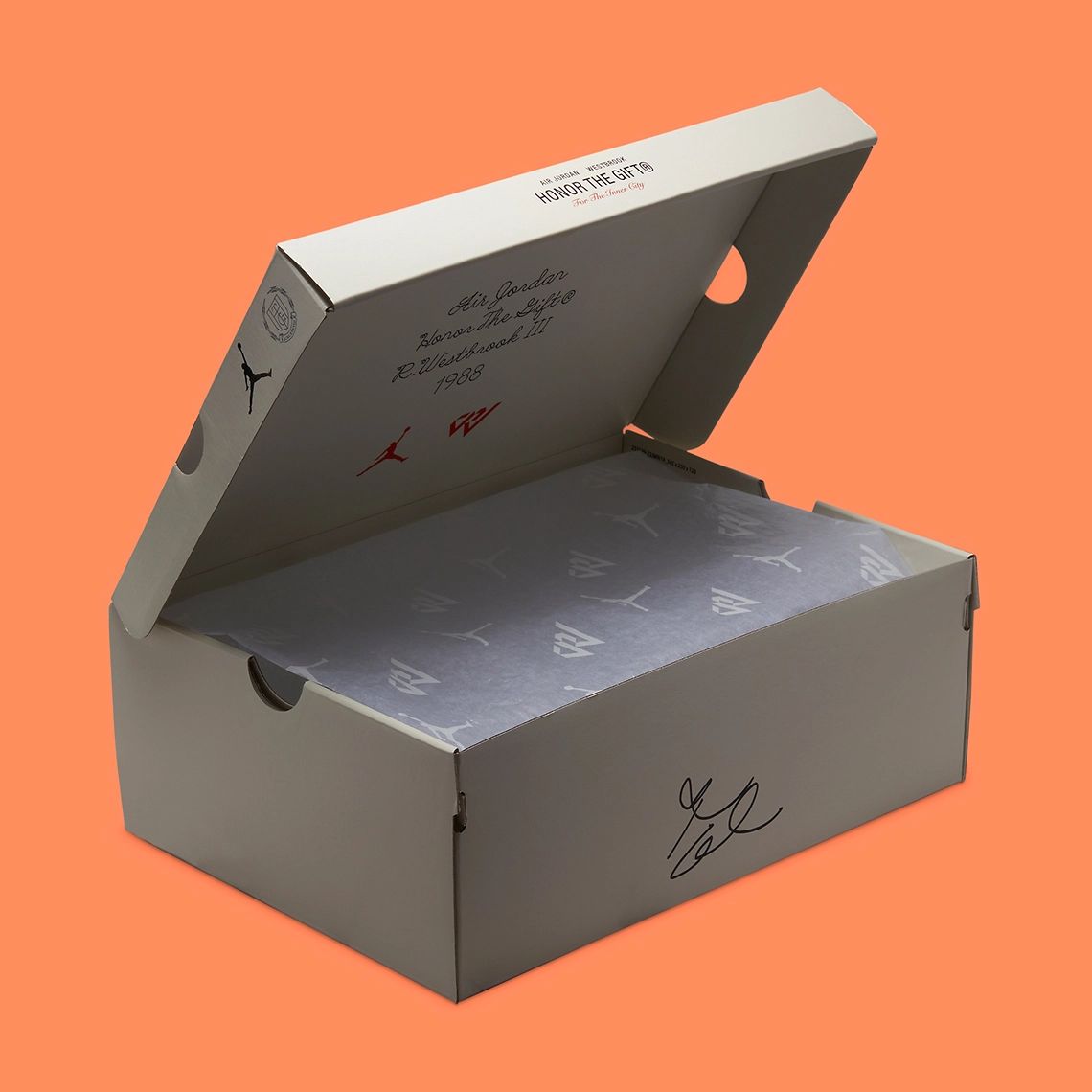 鞋舌分别点缀威少个人 Logo 和 「Honor The Gift」 徽章。