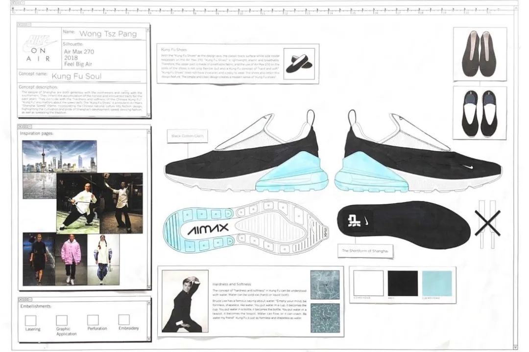 以功夫鞋造型和三合一的设计诠释太极阴阳主题。