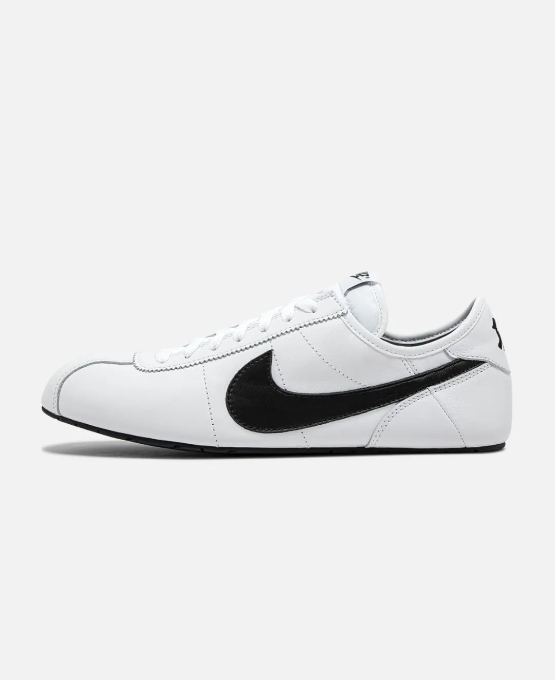 更适合在室内穿着的运动鞋款,采用白色皮革覆盖,点缀黑色 Swoosh。