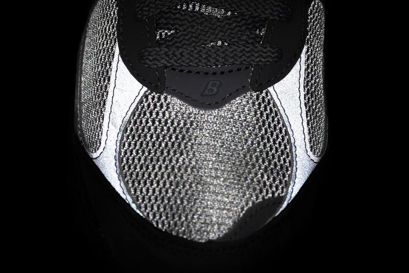 鞋面设计相较于过去惯用的防水重磅绒面革,改以反光网眼材质呈现鞋面。