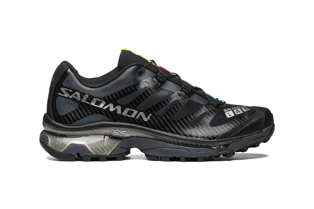 鞋侧延续经典的碳纤维纹理示人,网眼鞋舌上配合 Salomon 标志性的鞋带系统,令鞋款更适应户外场景穿着。