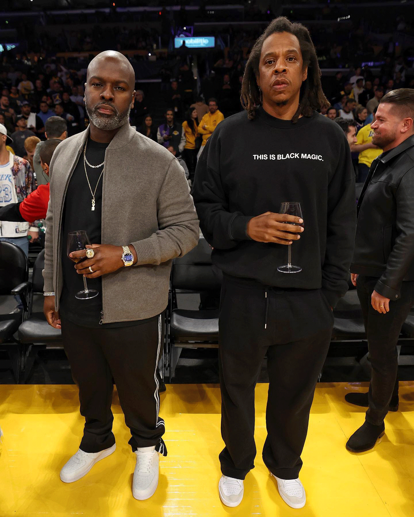 除了家人,还有一众明星前来,梅瑟威、歌手 Usher、Bad Bunny、Jay-z 等等,大咖云集。