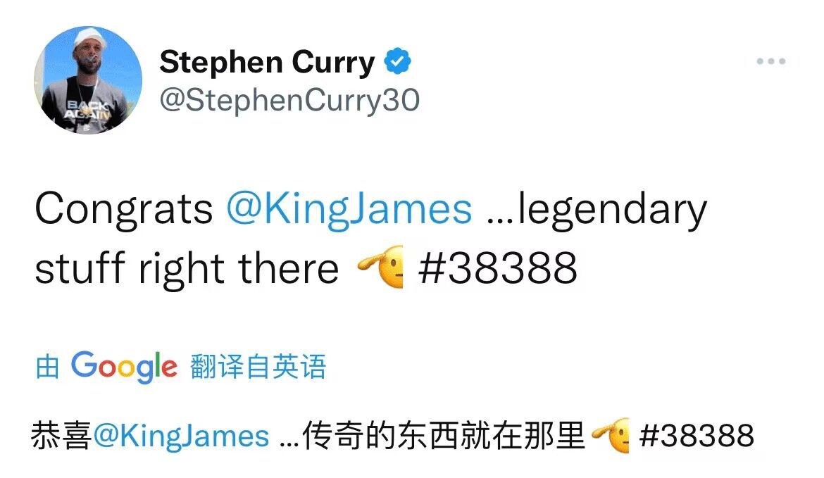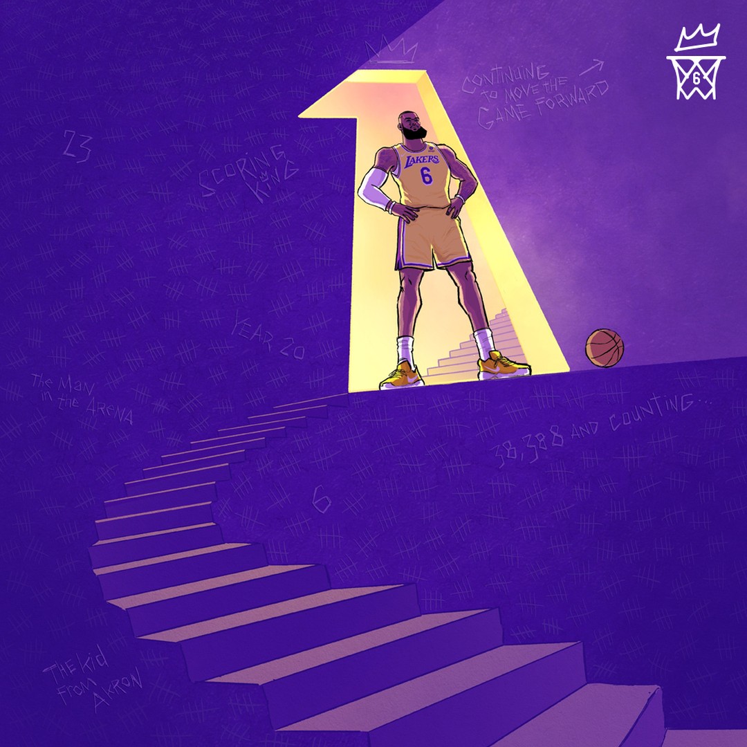 同时也凭借此球拿下生涯第 38388 分,超越贾巴尔,正式加冕历史得分王。