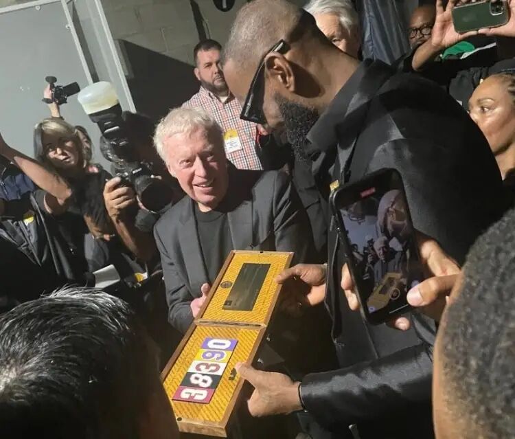 赛后,Phil Knight 还赠予詹姆斯一块印有 38390 的纪念匾。