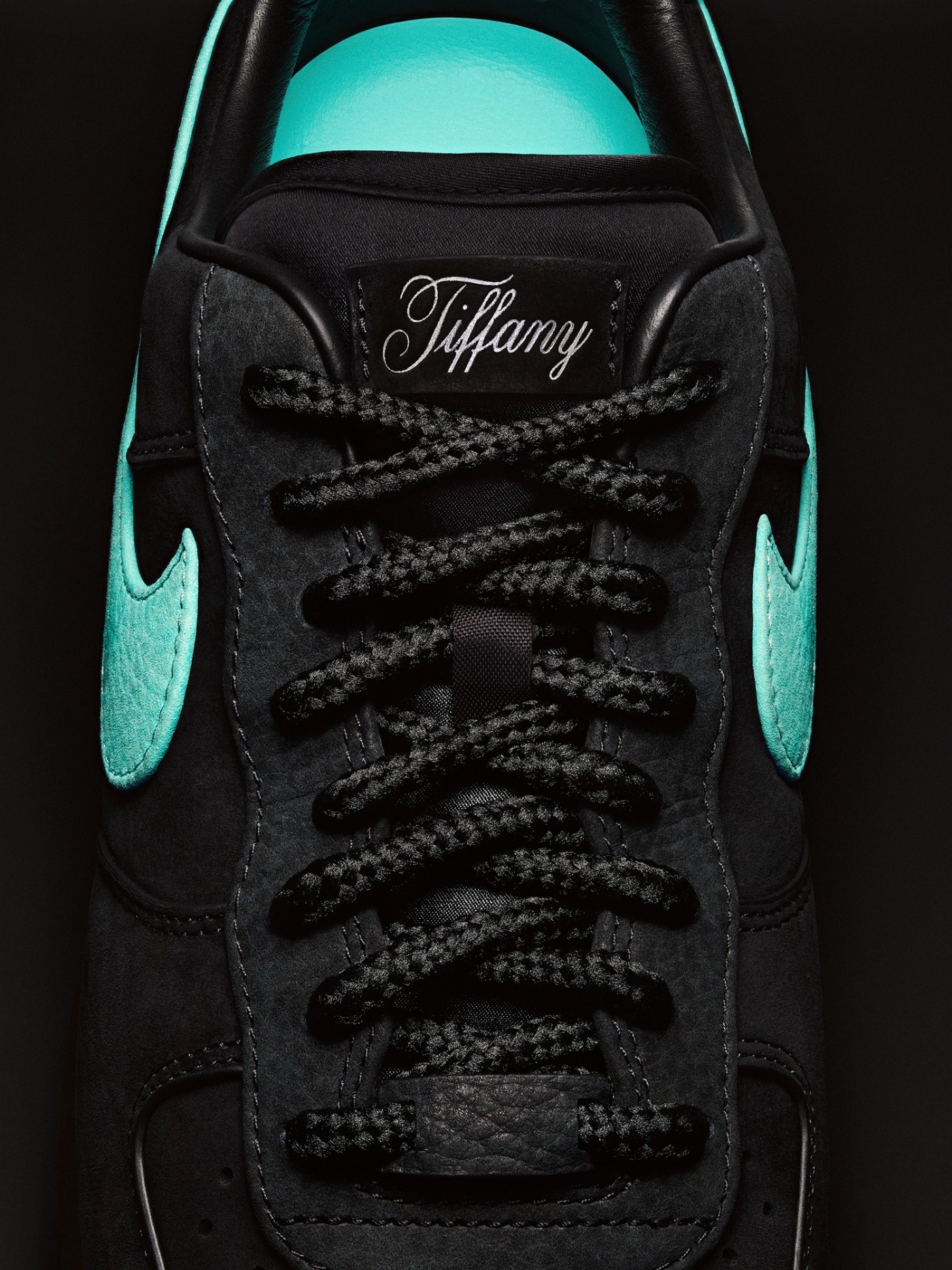 双方以「传奇成双」为主题,鞋身采用优质黑色麂皮打造,鞋侧 Swoosh 辅以经典的 Tiffany 蓝示人。