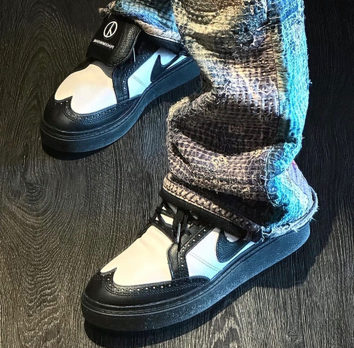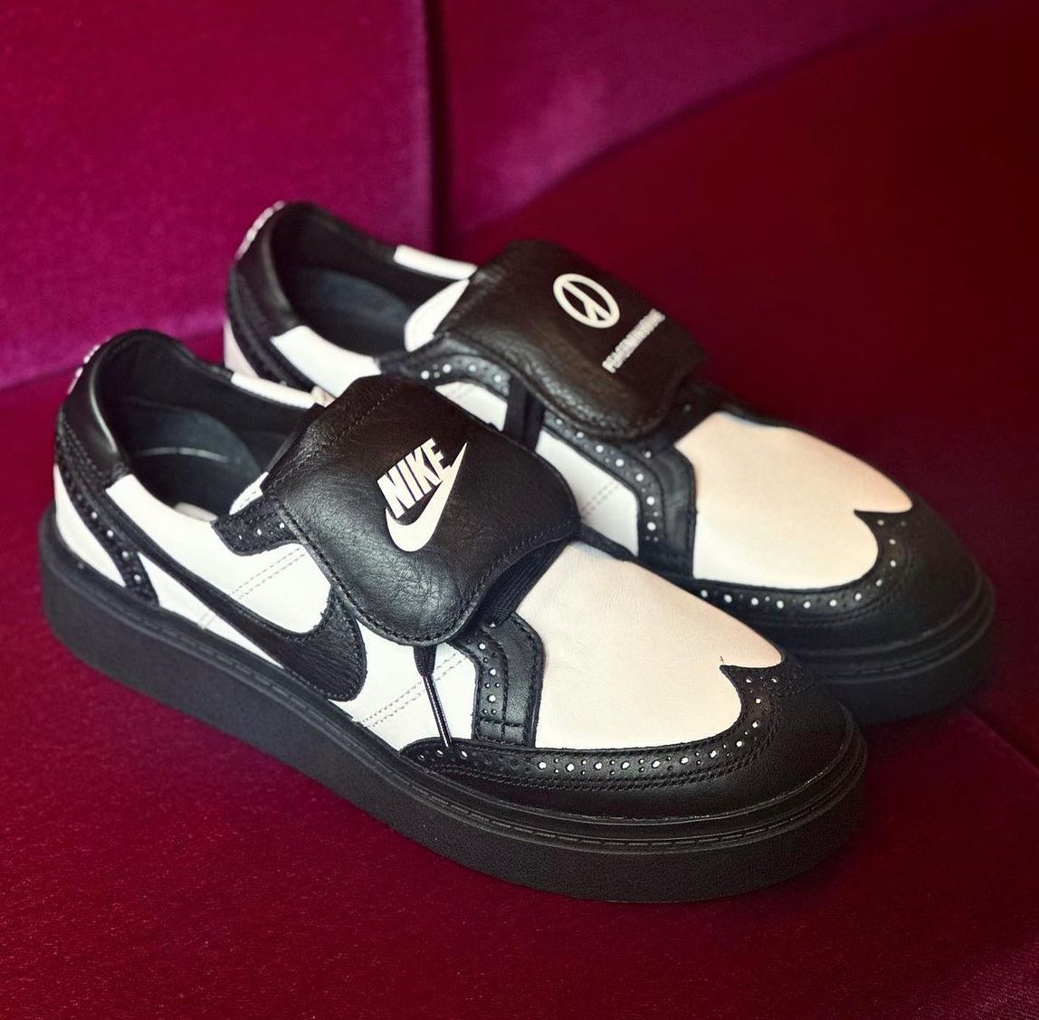 鞋舌处印有 Nike 和 PEACEMINUSONE Logo,彰显鞋款联名身份。