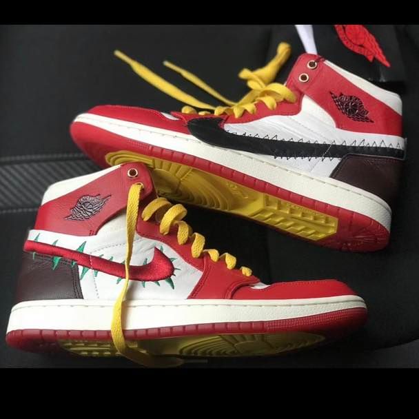 根据目前释出的实物来看,最大的亮点一定「荆棘」效果的 Swoosh,另一只则是相对熟悉的「解构」 Logo。