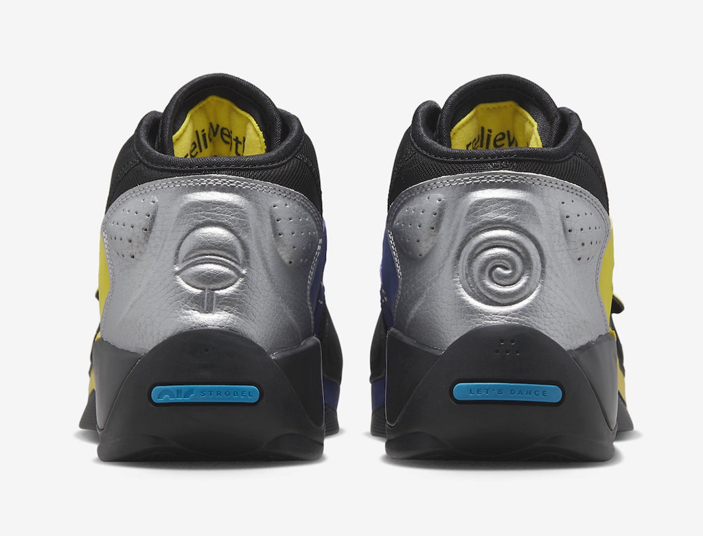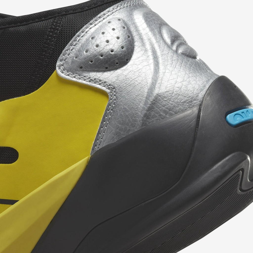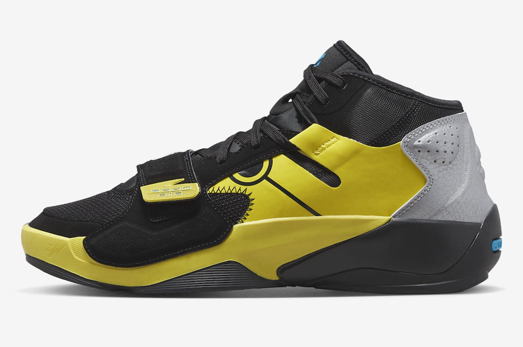 鞋头绑带点缀经典护额,一边是 Jumpman Logo,一边是胖虎的个人 Logo。