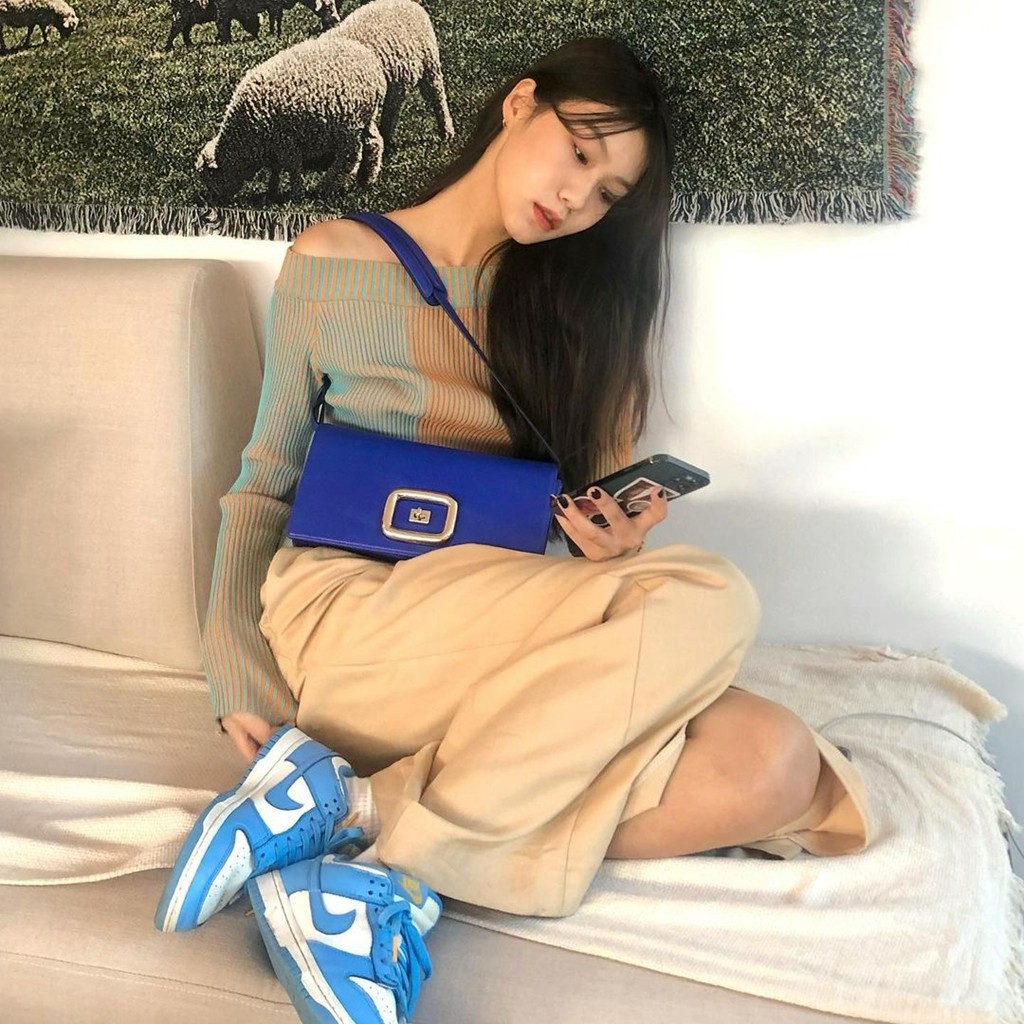 北卡蓝 Nike Dunk Low 也是她的最爱,光看这个脏兮兮的成色就知道日常肯定没少穿。