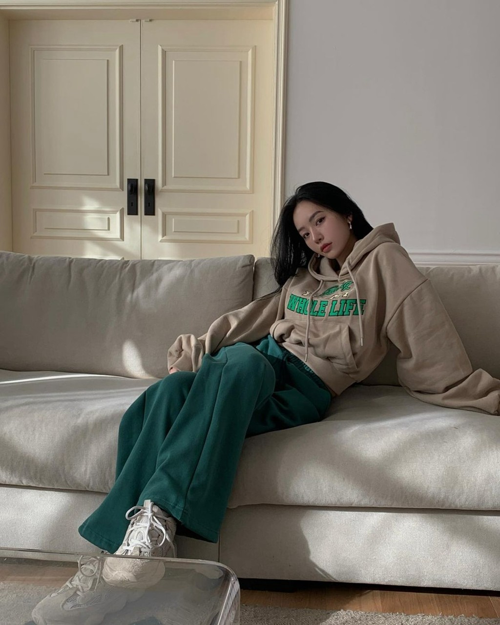 球鞋风格方面比较 OG 一些,像 Nike Dunk、三叶草贝壳头等等经典鞋型都是她的首选。