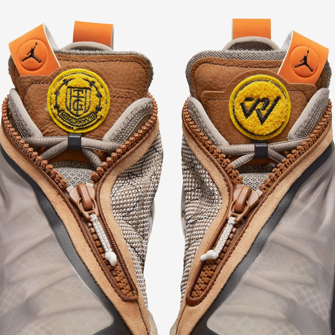 细节部分沿着拉链和鞋舌注入浅棕色,底层的网眼和鞋带又回到了主题的石褐色。