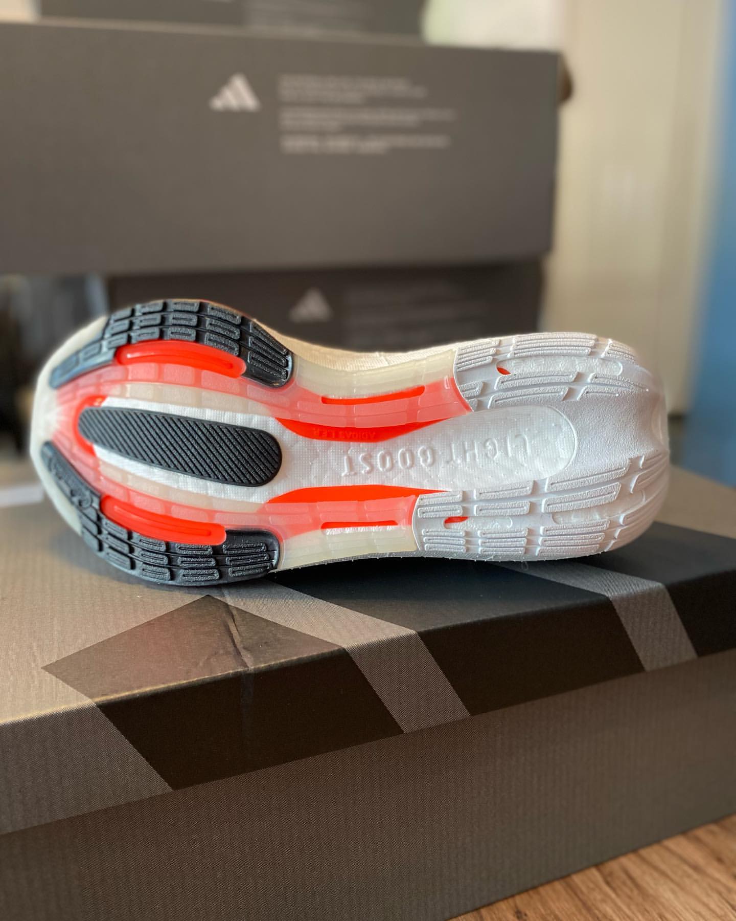 最瞩目的当属中底造型,超厚全掌 Boost 材质,给人一种坦克履带既视感。