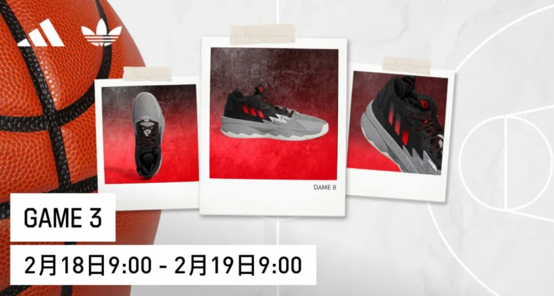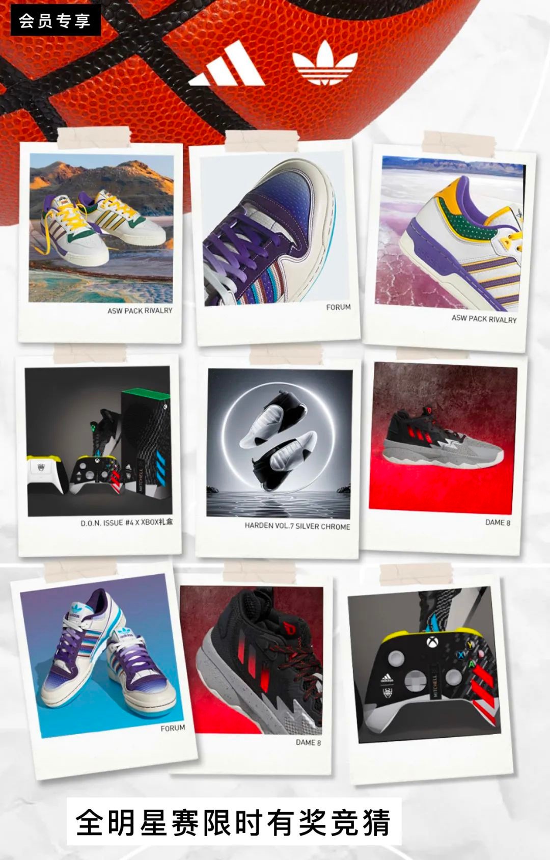 2023 年 02 月 16 日至 2023 年 02 月 20 日期间,adidas 会在官方 APP 上,进行 4 场关于全明星赛的有奖竞猜,回归初心,延续对篮球的热爱!