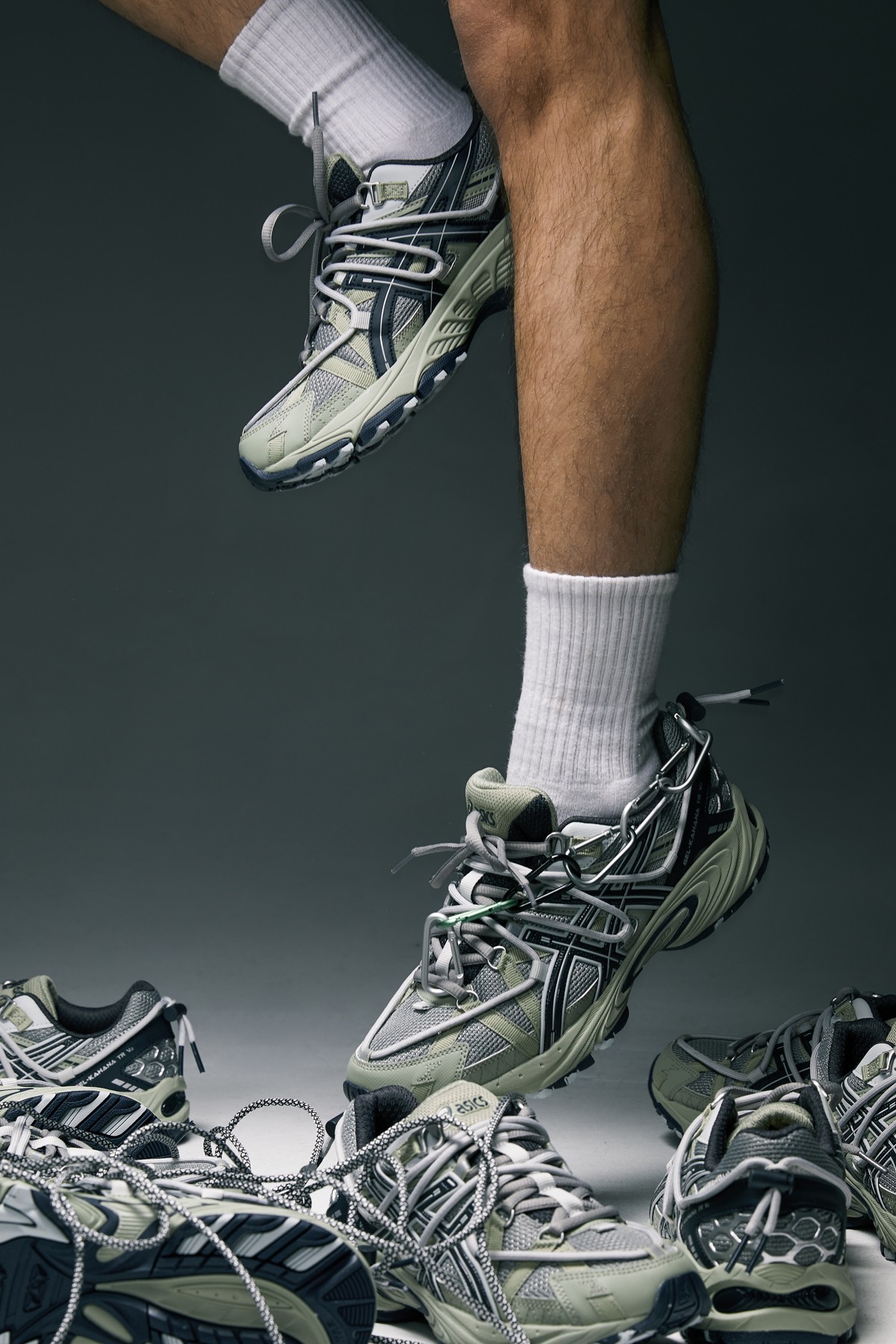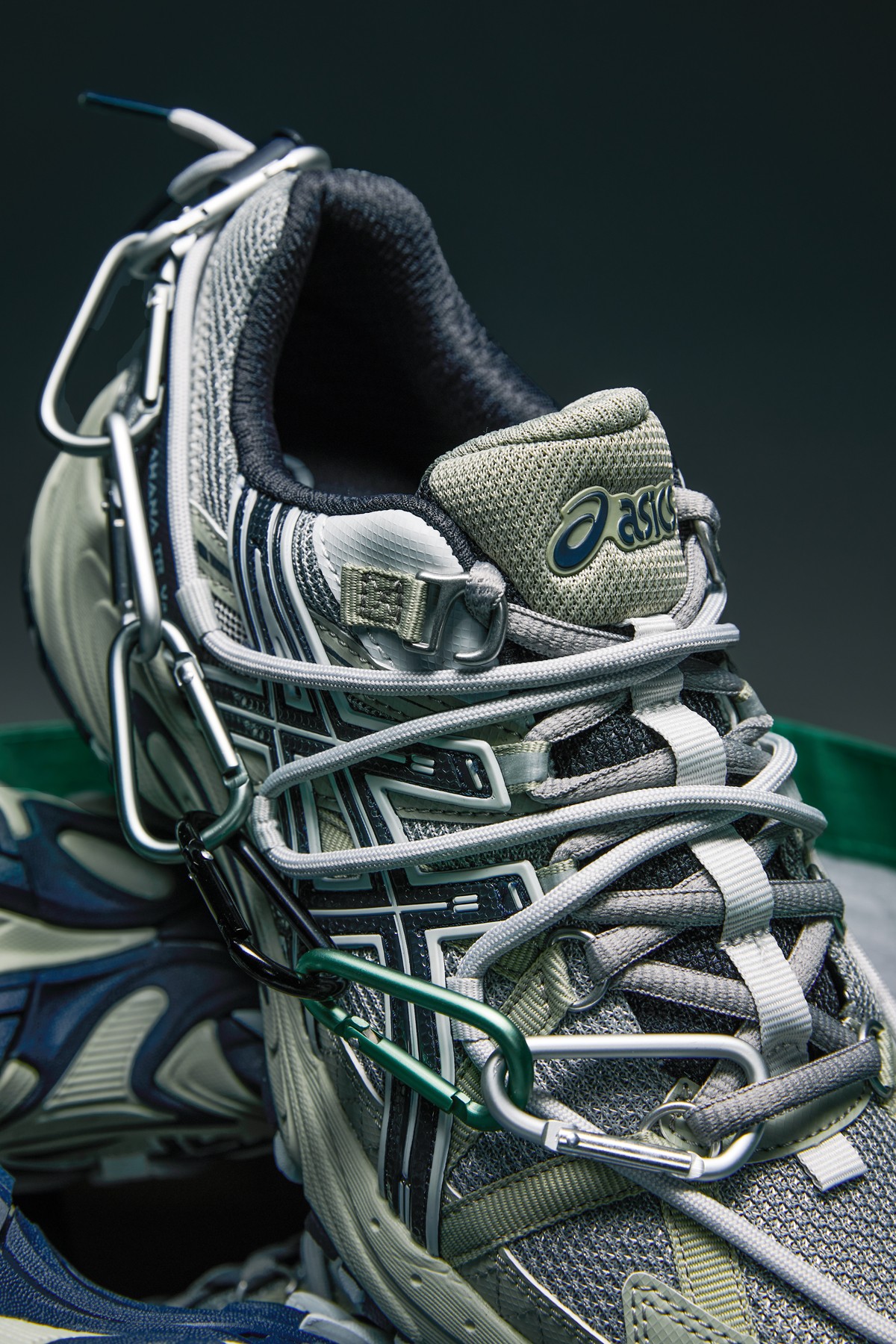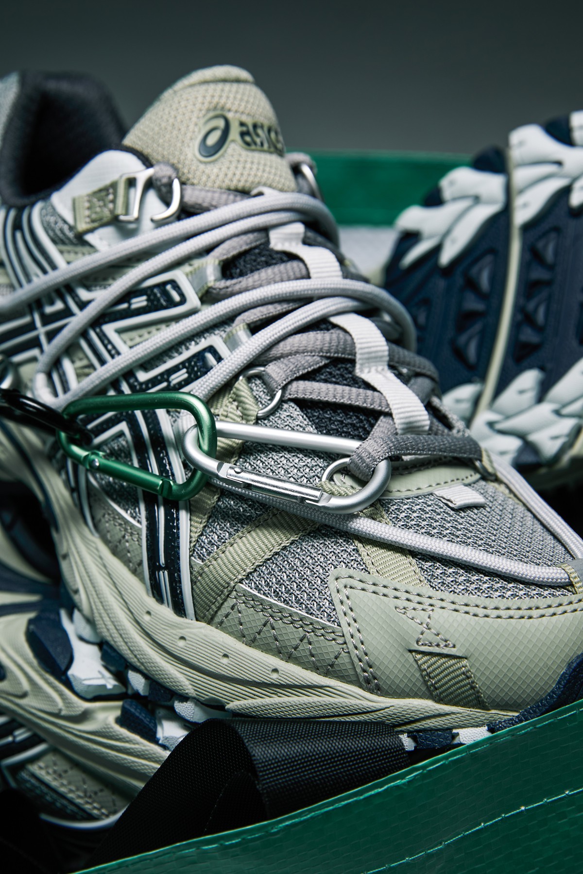 鞋身上的绳索细节非常值得一提,其设计灵感是来自于户外背包的穿绳方式,再结合日本传统草履绳结样式,为整体造型增添了户外机能感。