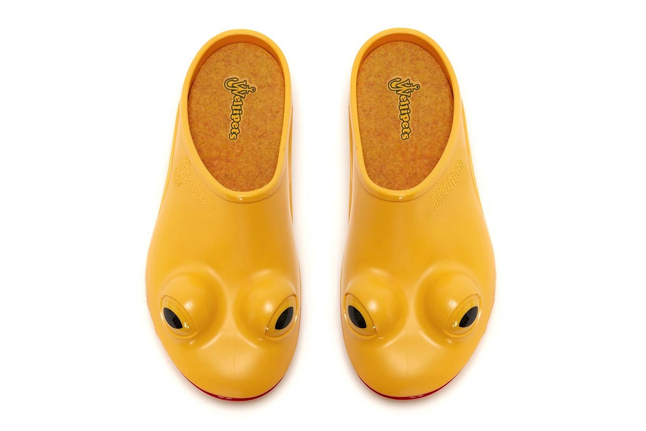联名款保留了青蛙元素的同时,移除了脚踝处的鞋帮,使其成为一脚蹬的 Mule 鞋型。