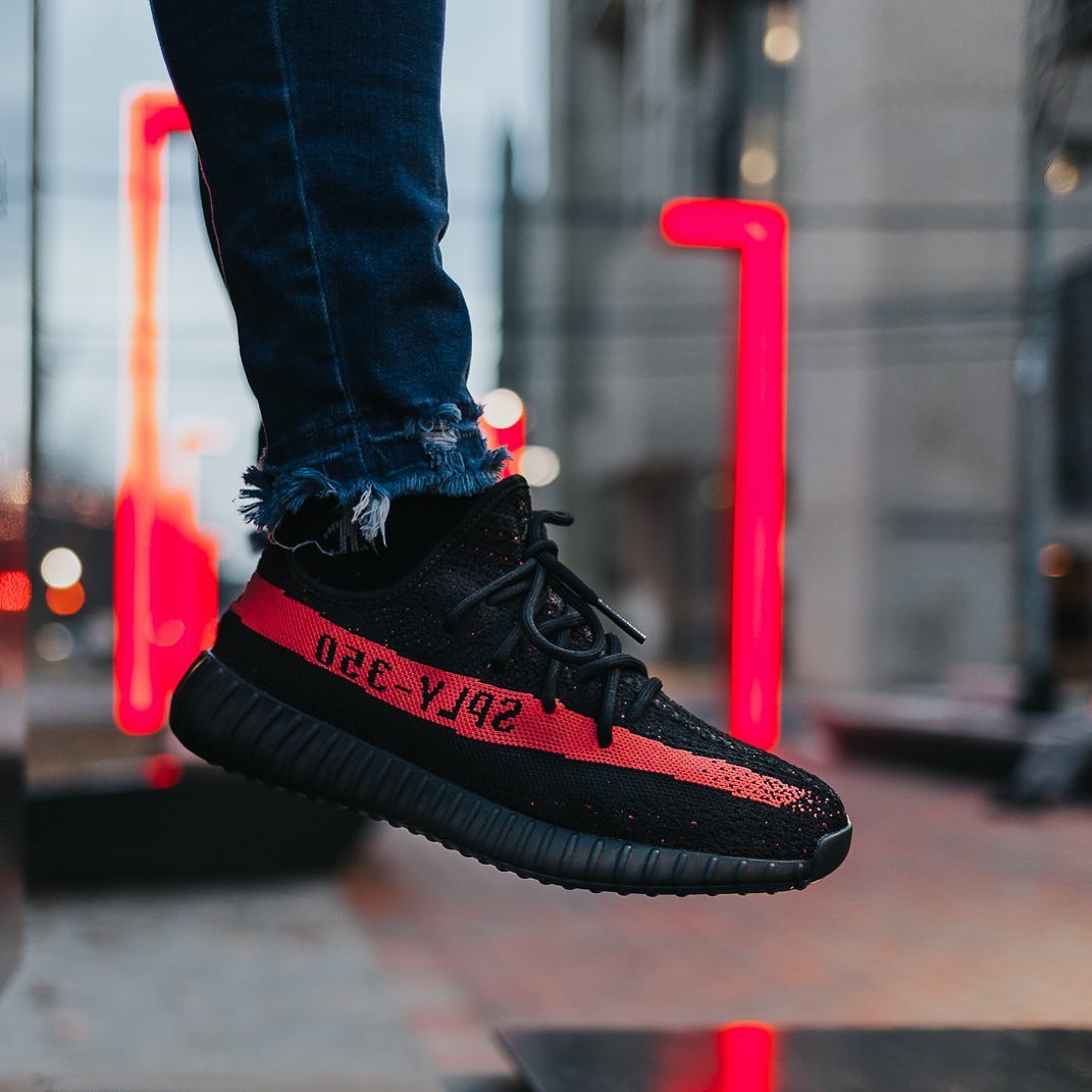 Yeezy 350 V2 黑红油漆条