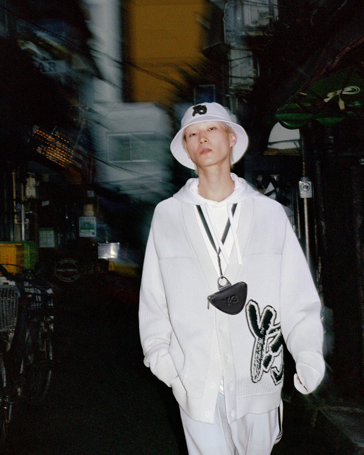服装与配饰中攘括了棒球服、运动裤、工装裤、衬衫、针织开衫以及帽子等款式,将 Y-3 的品牌 Logo 以手写体和艺术化形式呈现,颠覆了以往的造型设计。