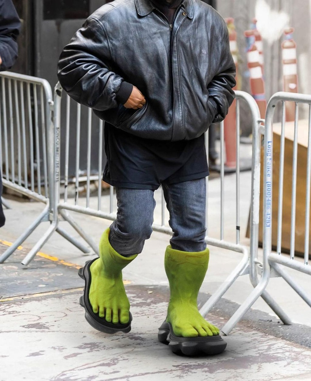 最近,海外又爆出侃爷 “上脚” 了一双神秘新鞋,好家伙直接就是一对绿巨人的脚!