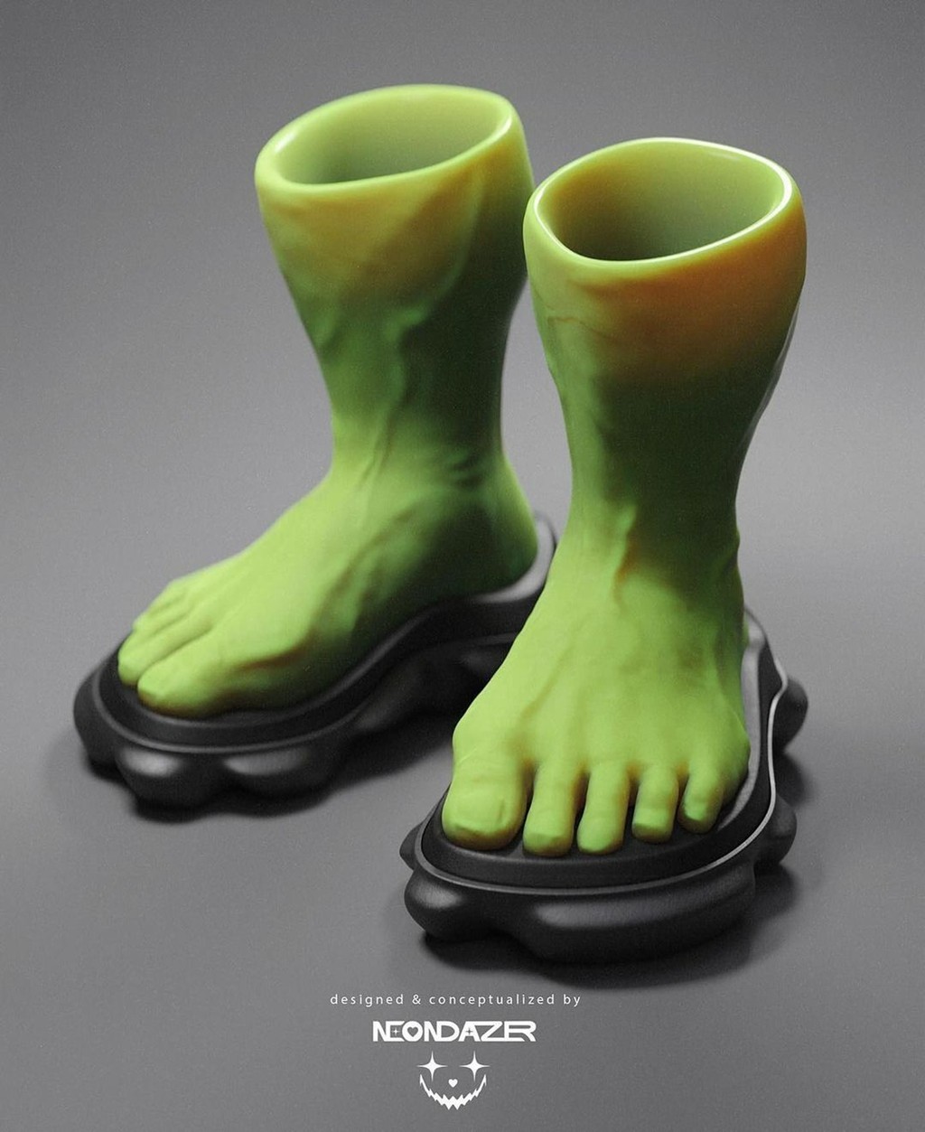 这是海外一位数字艺术品设计师 neondazer 的最新作品,就是为了迎合当下的「怪鞋风潮」。