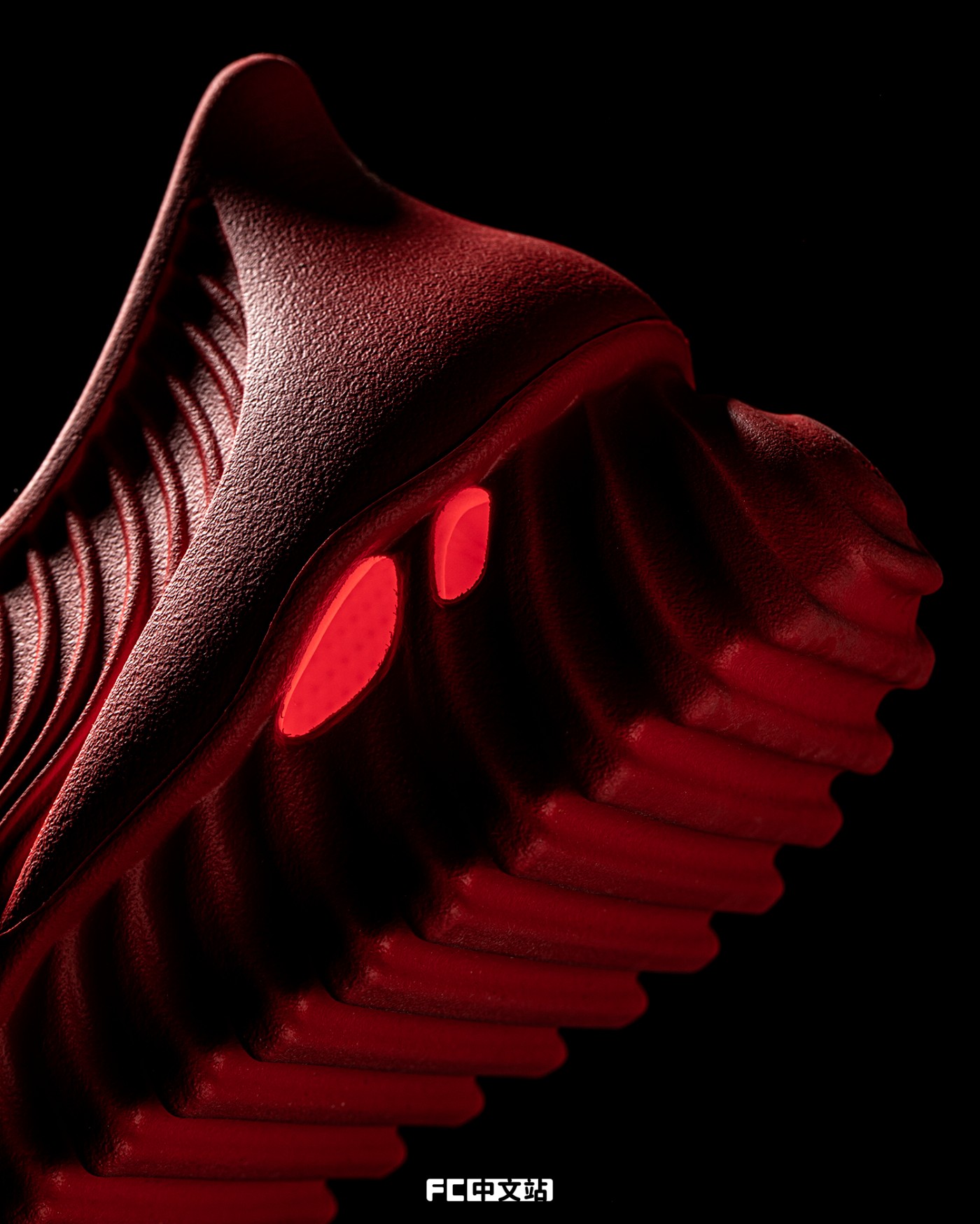 鞋型以鲸鱼形态进行设计,运用其独特的牙齿轮廓勾勒在鞋两侧,带来极具创意性的花纹线条。