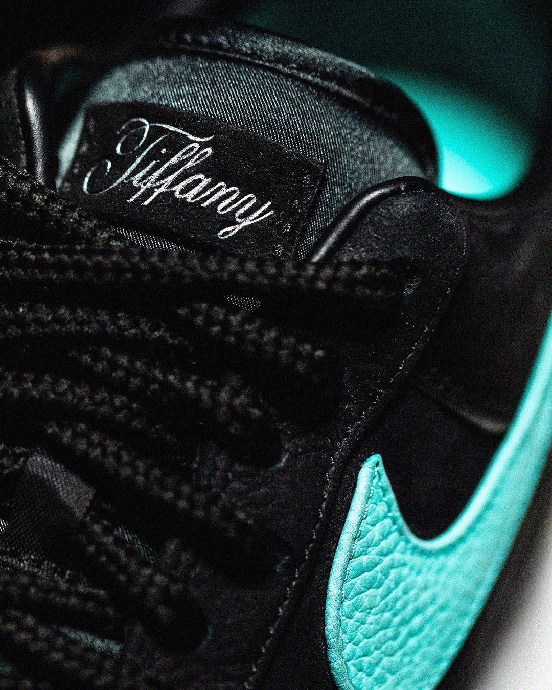 黑色麂皮鞋身辅以标志性的蒂芙尼蓝 Swoosh 点缀,辨识度独一无二。
