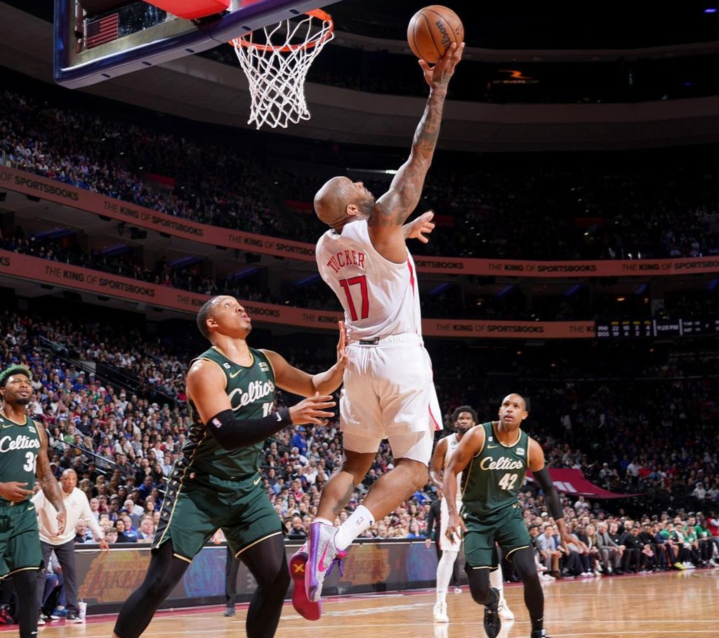紧接着第二天,76 人主场对上 “死敌” 凯尔特人,欲报此前的季后赛之仇,双方打的难解难分。
