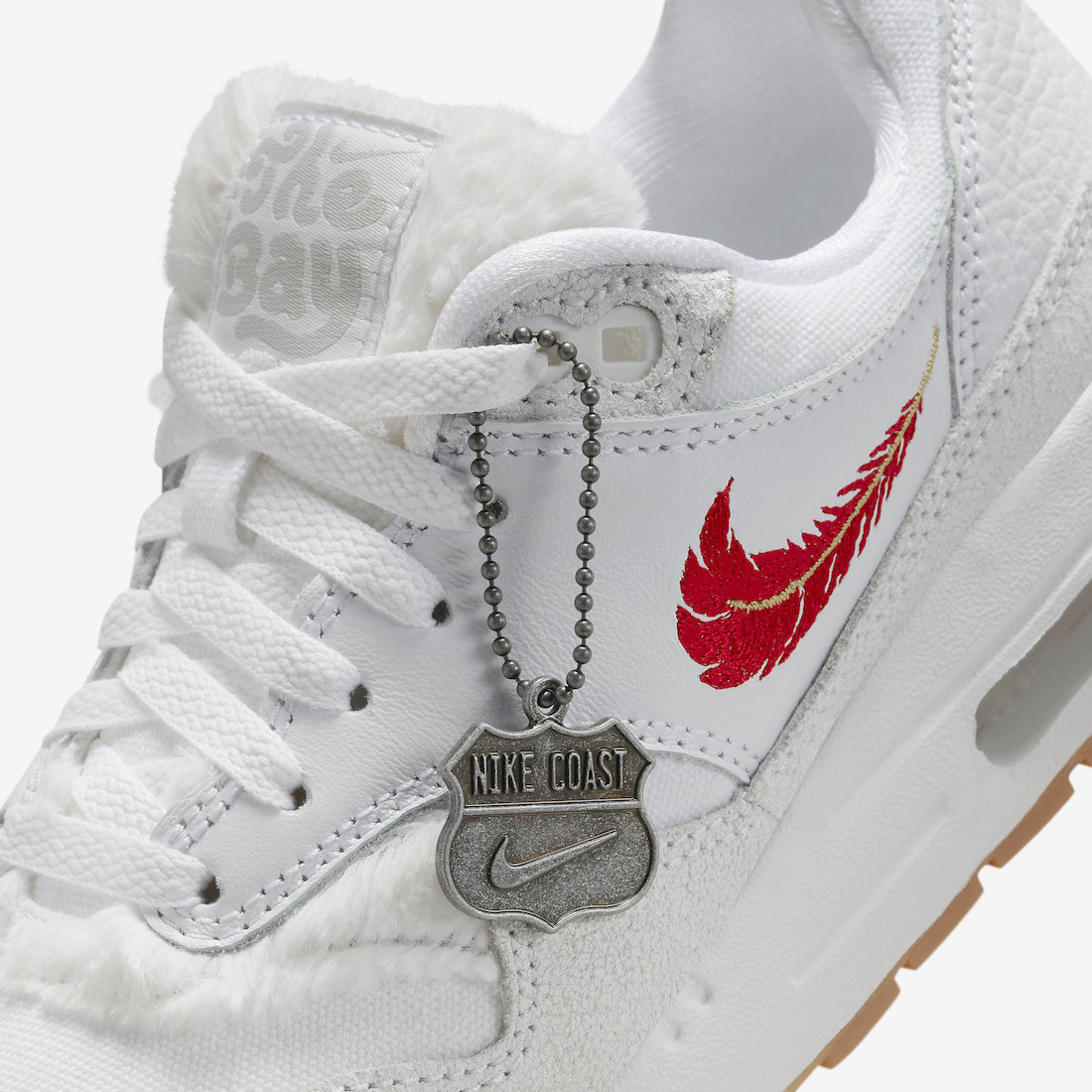 鞋侧面 Nike Swoosh 以红色羽毛装饰,设计感十足。