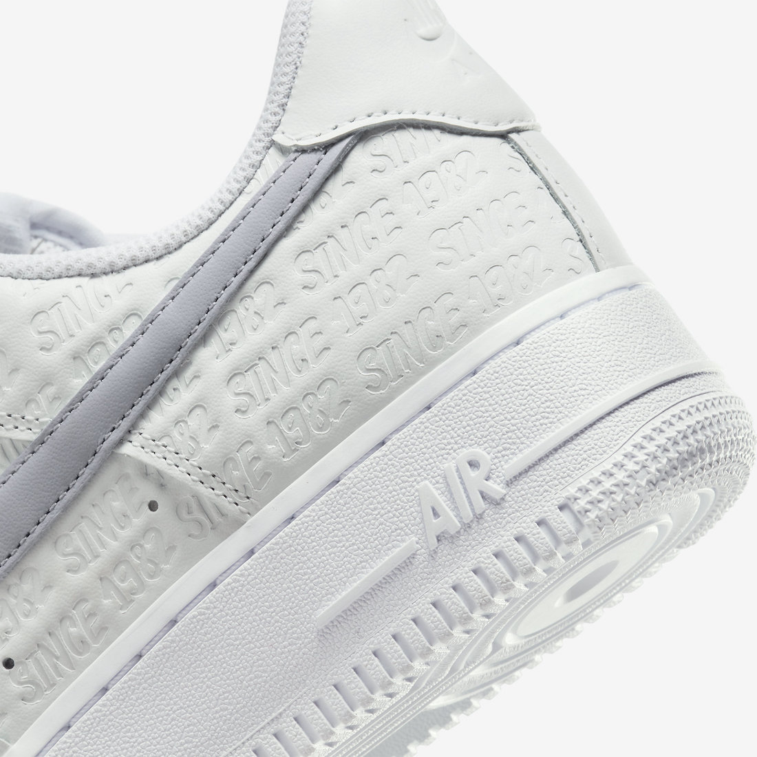 而与普通版本不同的是,鞋身用钢印印满了「Since 1982」字样,显示出了 Air Force 1 诞生年份。
