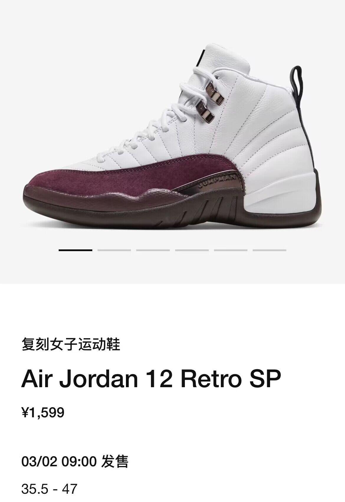 就在昨天 SNKRS 中国 APP 正式上架 A Ma Maniére x Air Jordan 12,将于明天上午发售,喜欢的小伙伴一定要定好闹钟。