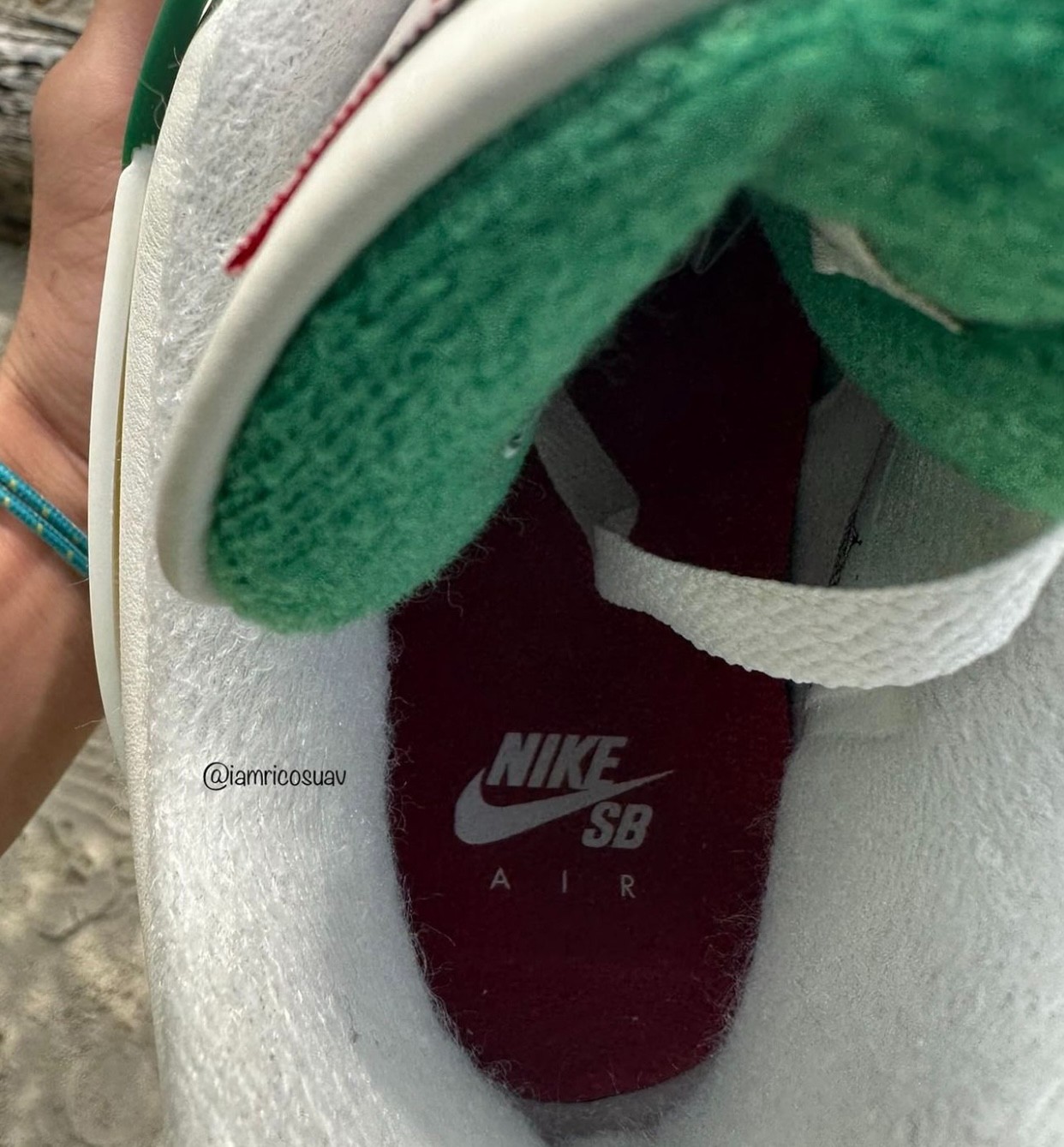值得一提的是,此次联名后跟并非传统的 Nike 或 Junpman Logo,而是采用了「Nike SB」特有的造型,彰显联名身份。