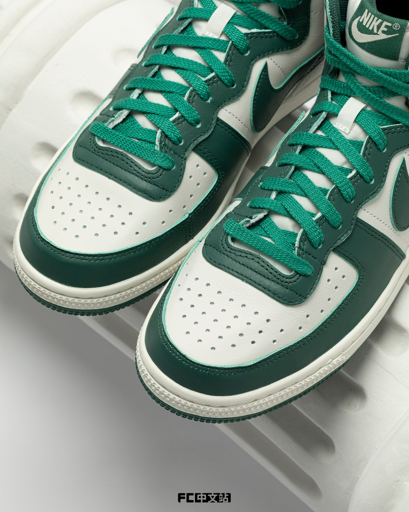 后跟的 NIKE 字样依旧保留,同样采用绿色处理,与鞋面造型相呼应。