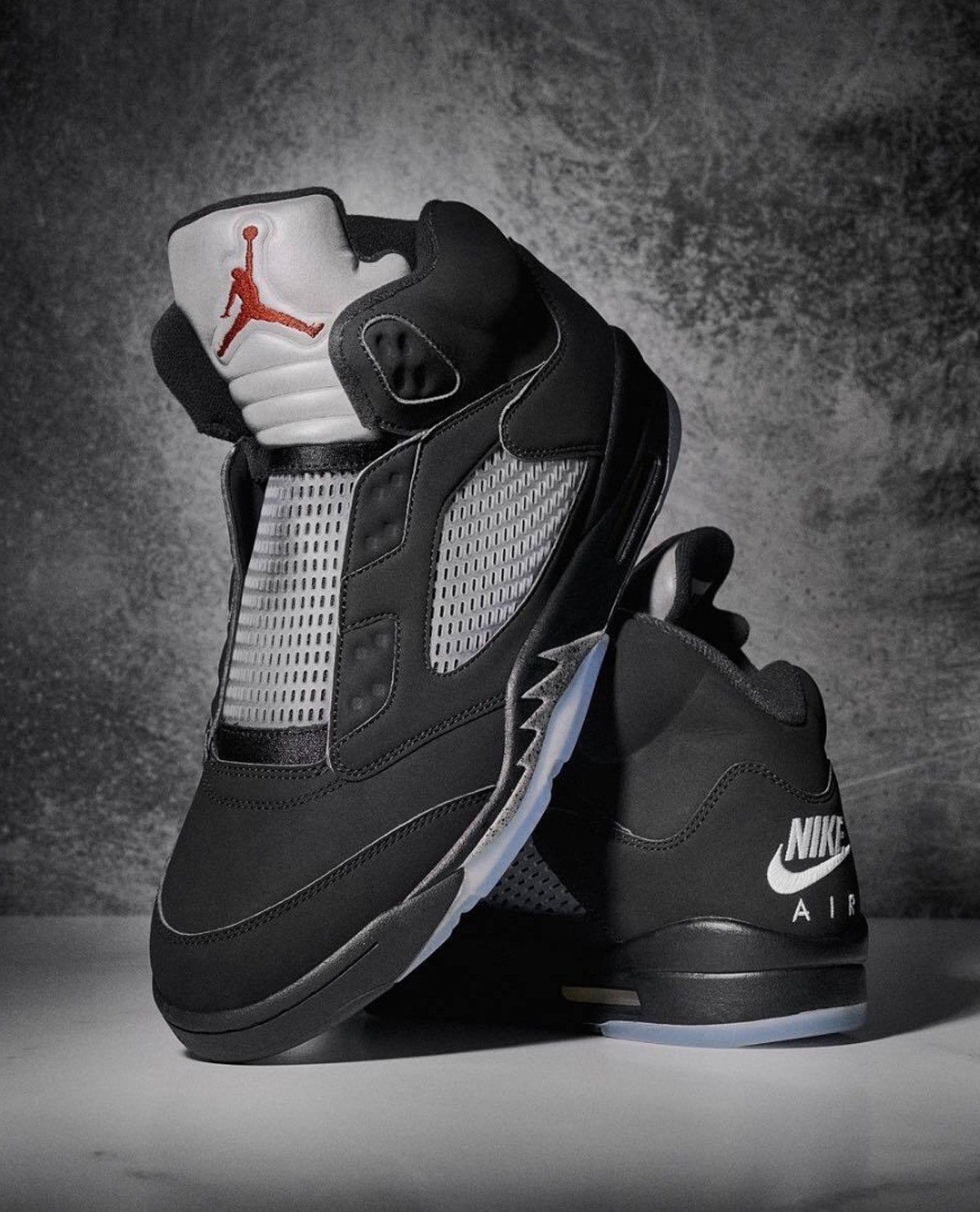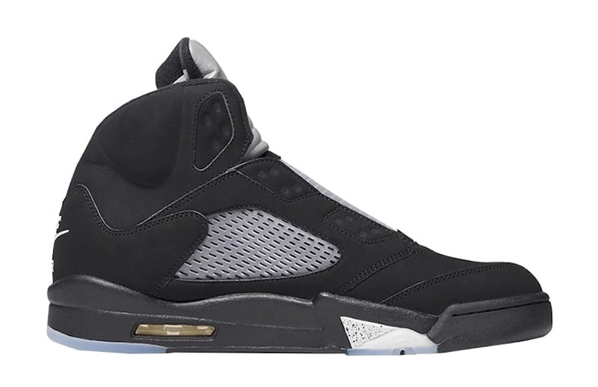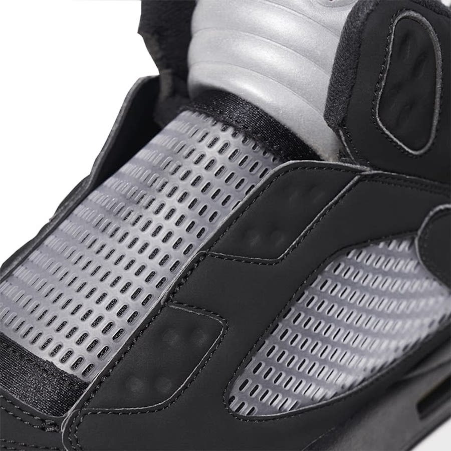 整双鞋以 Air Jordan 5 “BLACK METALLIC” 为灵感进行创作,通体的黑色造型辅以银色细节,视觉效果格外酷炫。